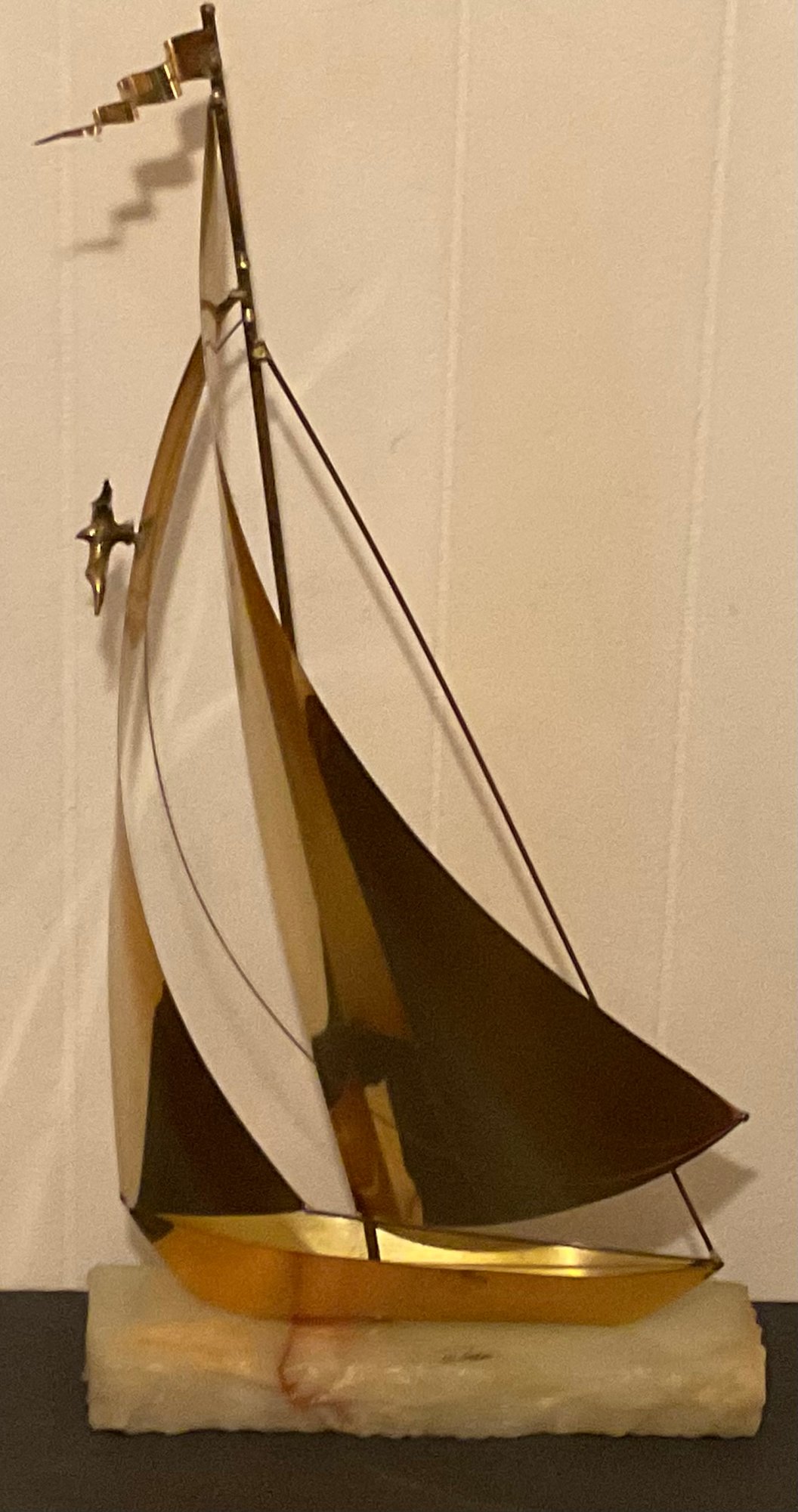 De Mott Signed Marble & Brass Sailboat.