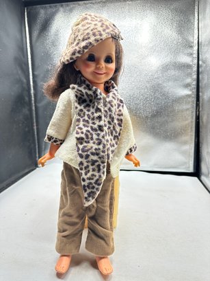 button in her back works. It makes her hair longer and shorter 15 1/2"