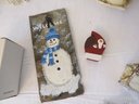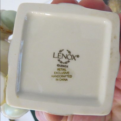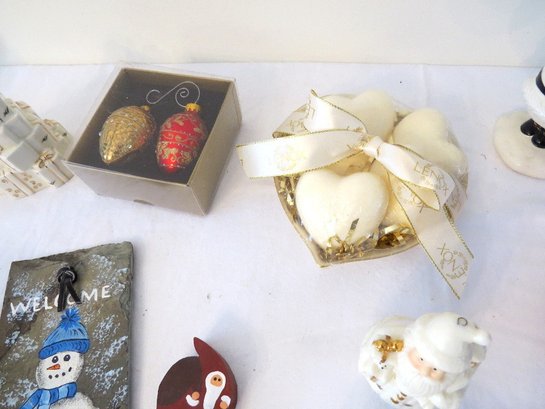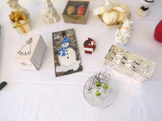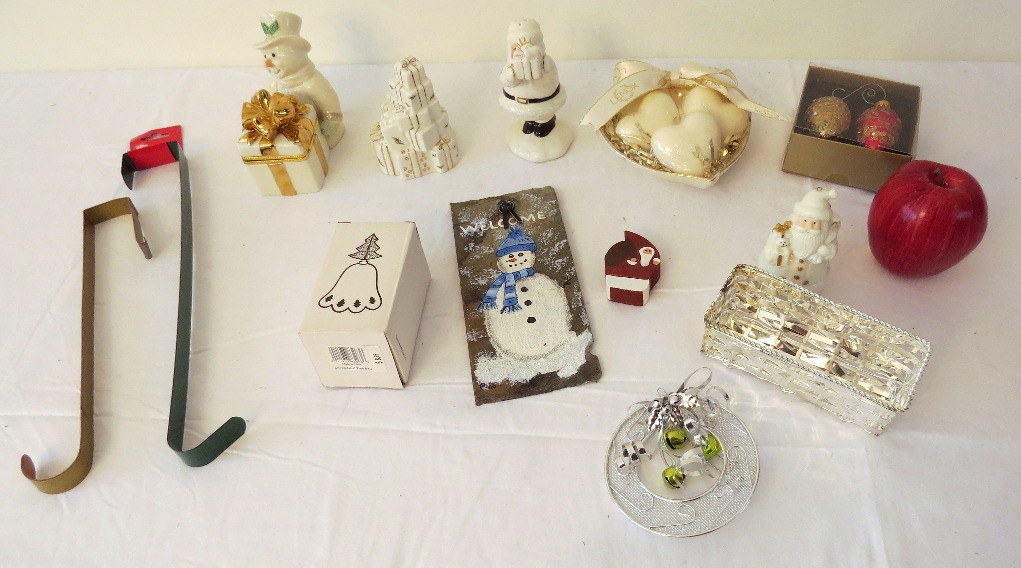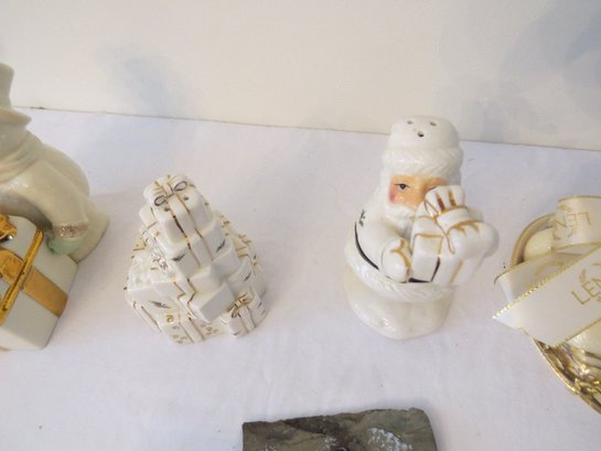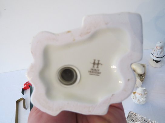 Grouping of decorative holiday accent pieces including two by Lenox, figural salt & pepper set by Holly Holiday and more.