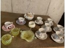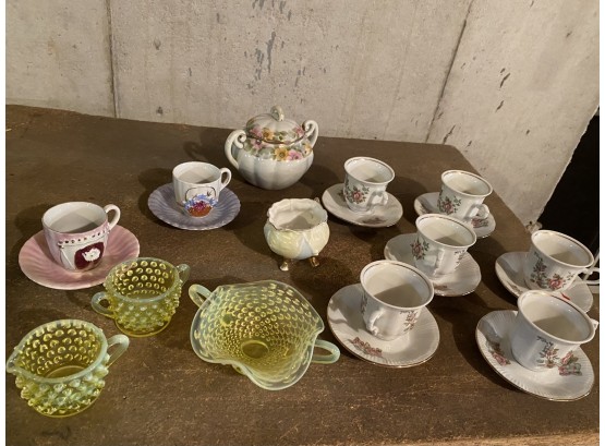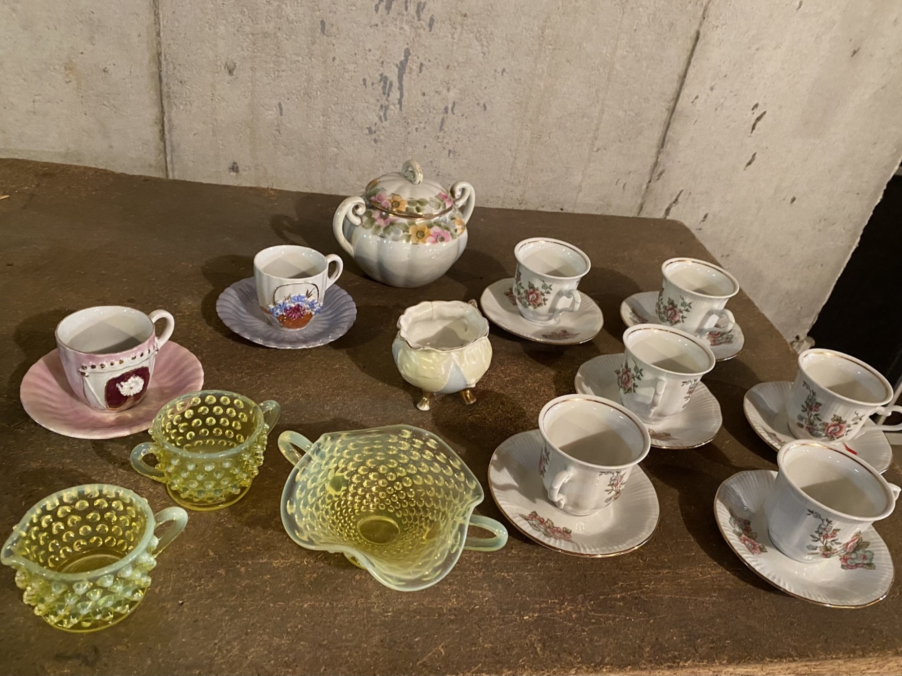 3 pc. yellow hobnail depression glass; setof 6 demitasse cups and saucers; sugar bowl nippon; creamer, 2 cups and saucers