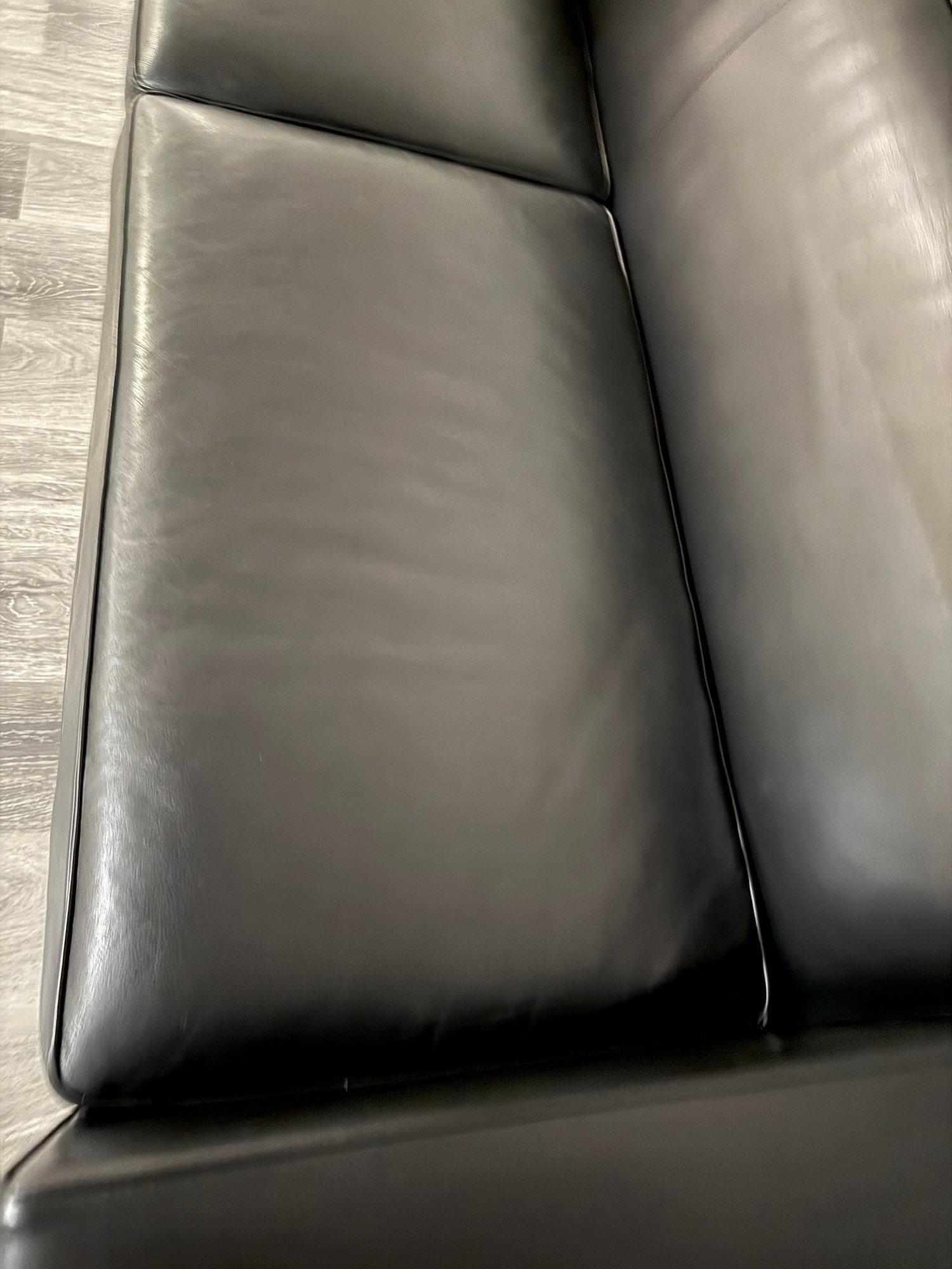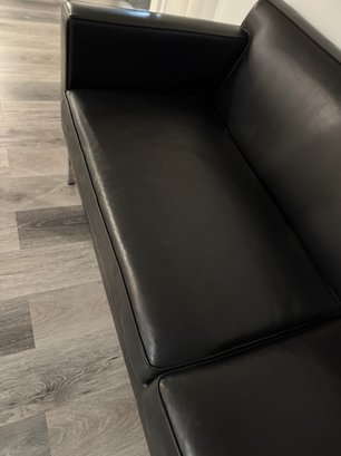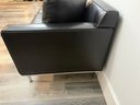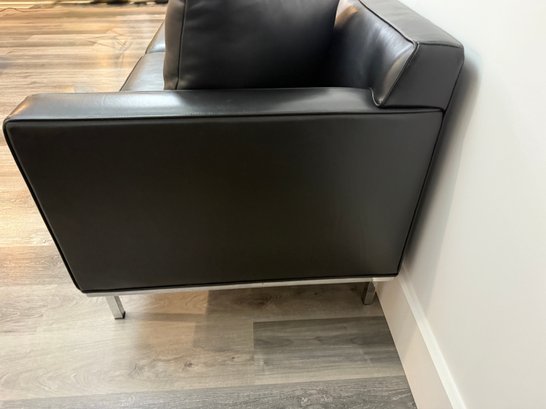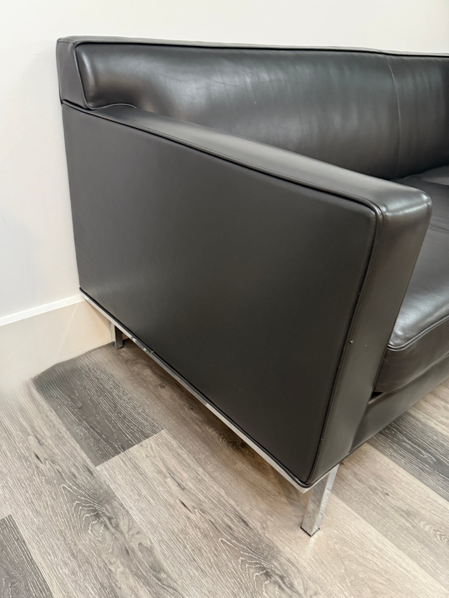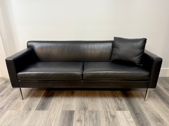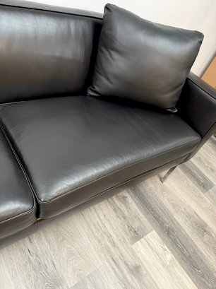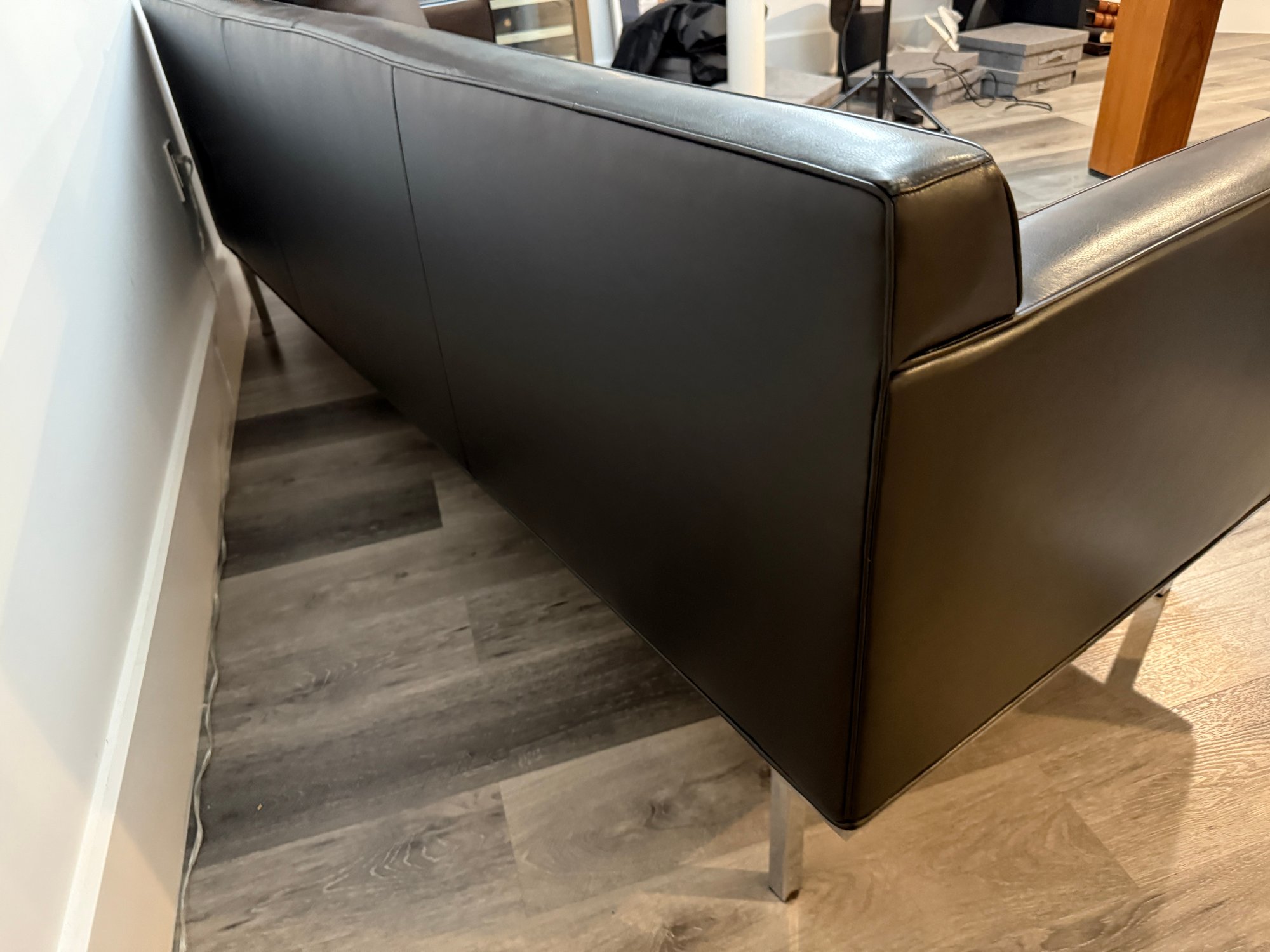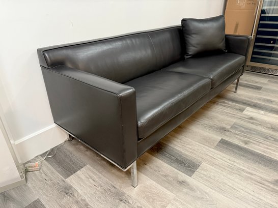 Excellent condition couch with polished chrome legs. Inlcues one leather matching pillow