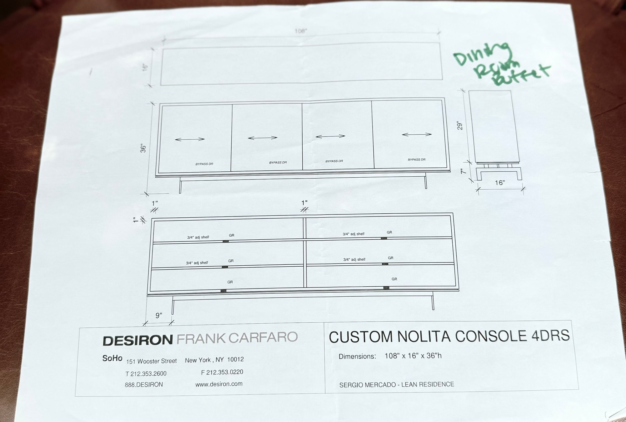 Dimensions: 108"W x 16"D x 36"H