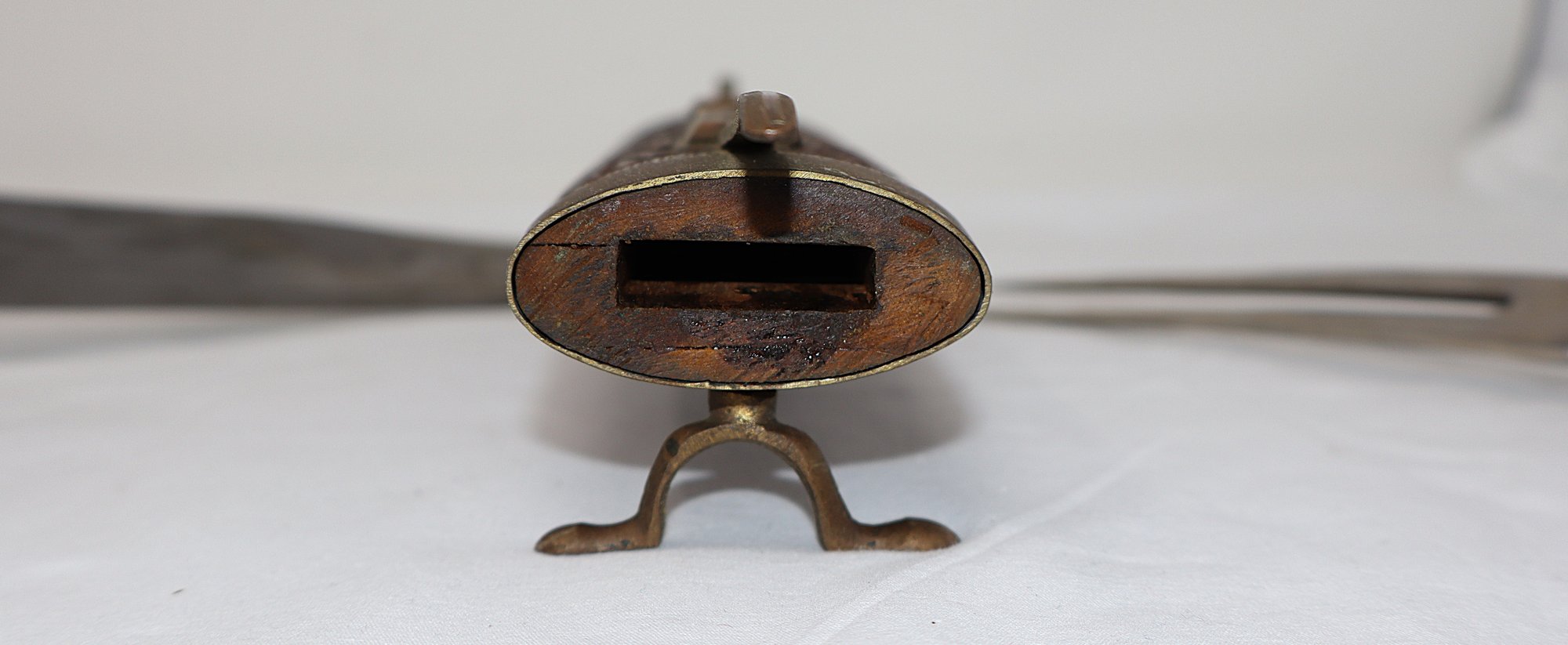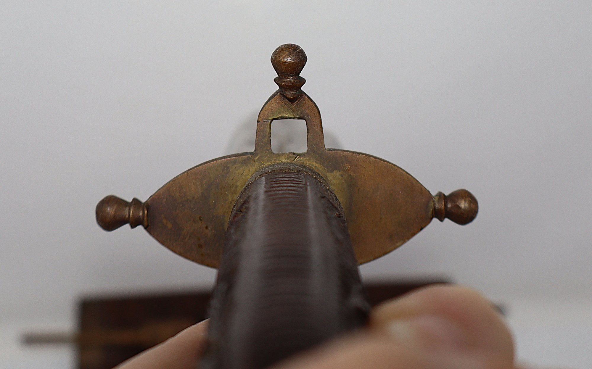 Brass fittings include locking mechanism, feet & guards. Both pieces fit securely into the scabbard on their respective sides