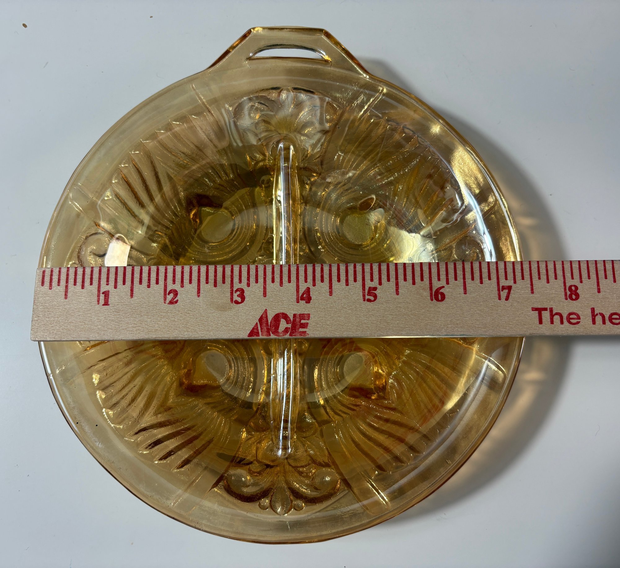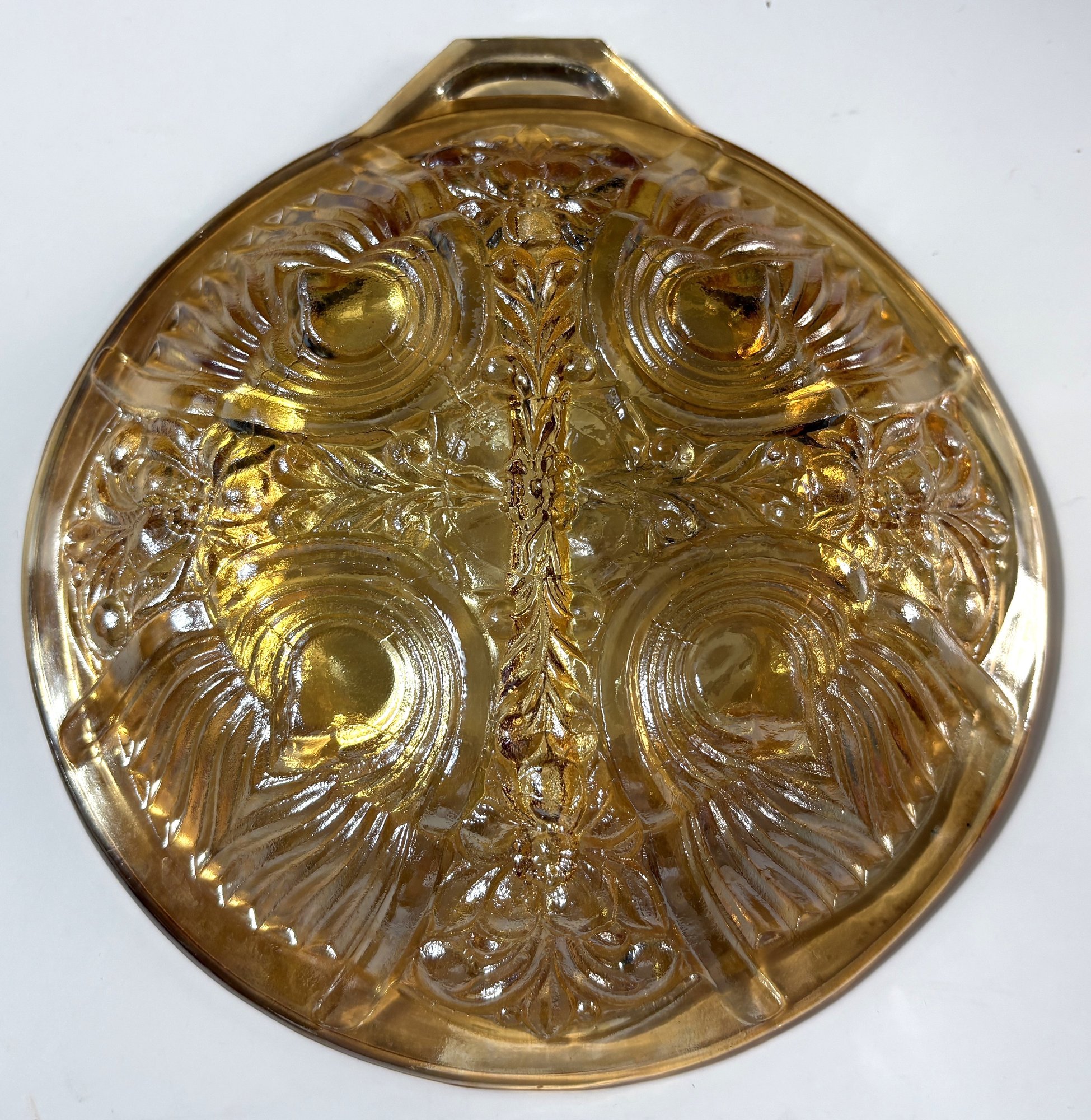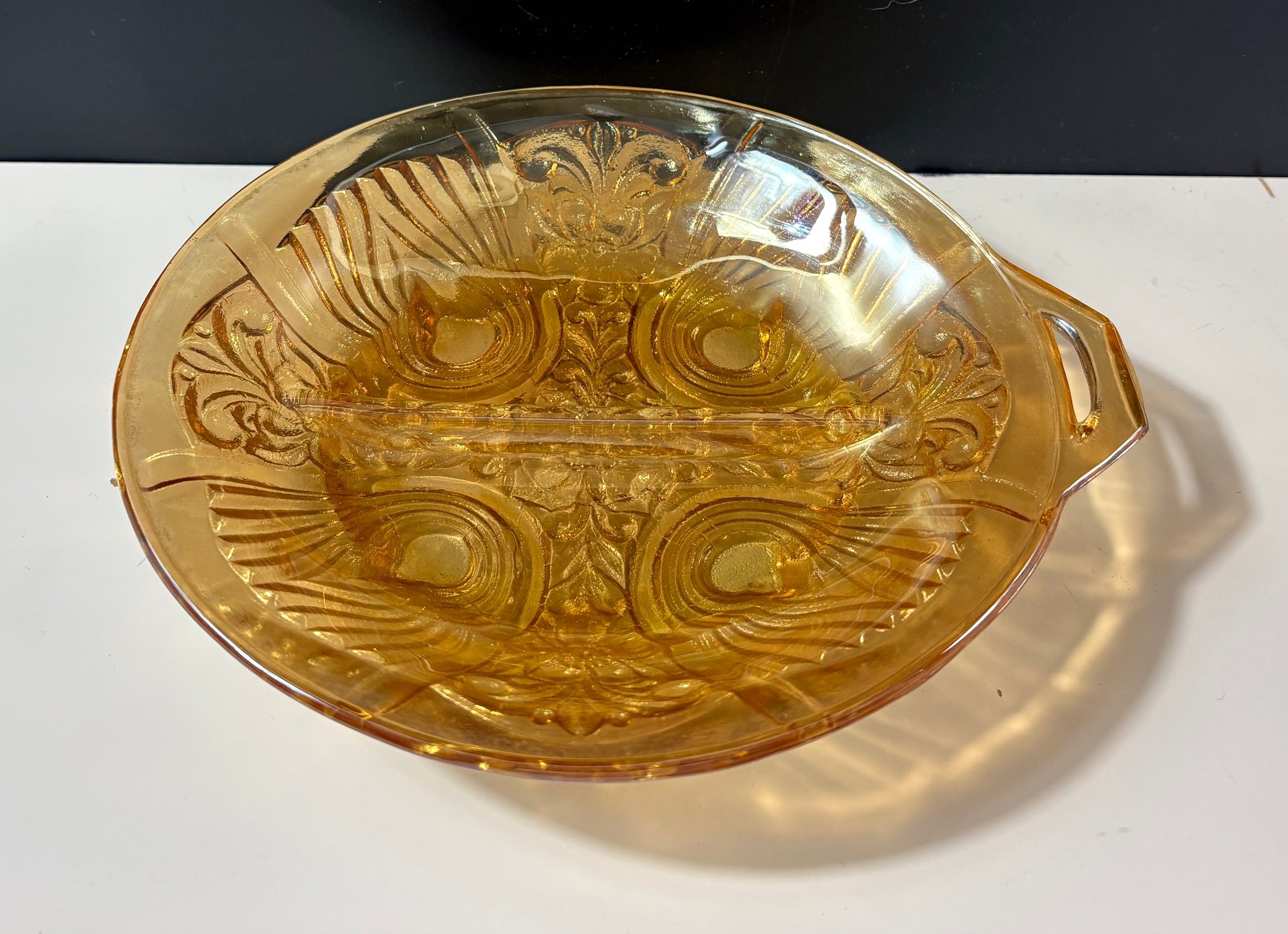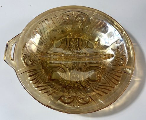 Indiana Glass Amber Killarney Divided 2 part Tab Handle Relish Dish Bowl