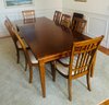 Dining room table with 2 leaves and pads, 6 matching chairs, 2 armchairs. There are some chips on the table - see pix for detailed information re: condition.