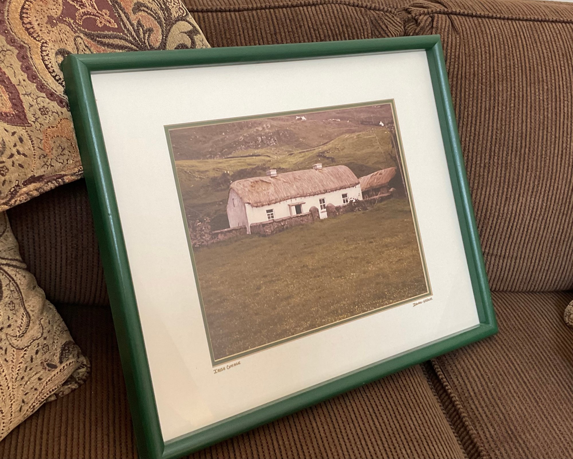 Framing: Housed in a vibrant forest green frame with a crisp white over-mat and a gold-tone inner accent.