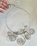 A wonderful unique necklace in Sterling Silver. It's a very sculptural piece - truly art jewelry. It's in very good condition and measures 9" from top to bottom and about 6" across. The neck ring is about 17".