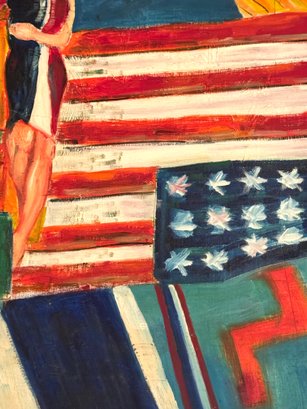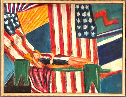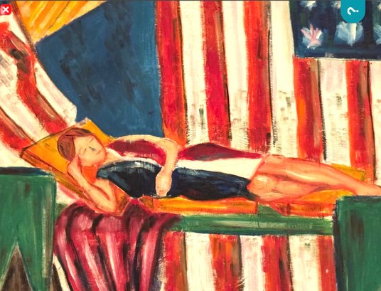 Painting needs a little TLC attention as is loose from wood frame. Size 25.5 L x 18.5 H x 1.5 D