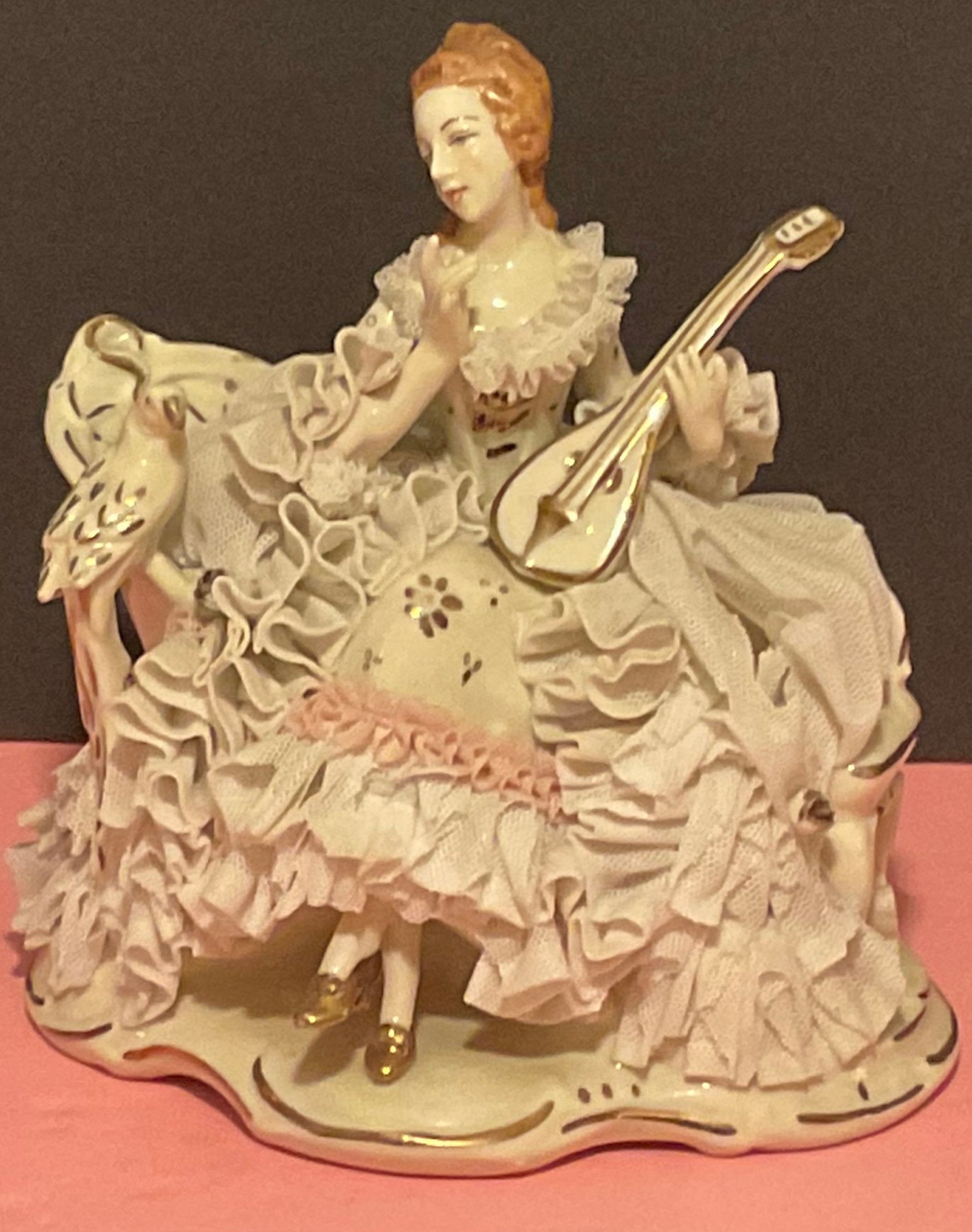 Lace on Dresden Figurine is where it is materialized through a process whereby