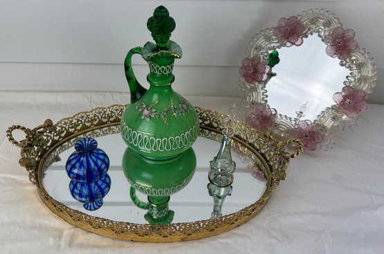 Notes: small perfume bottle has small chip on ribbon area