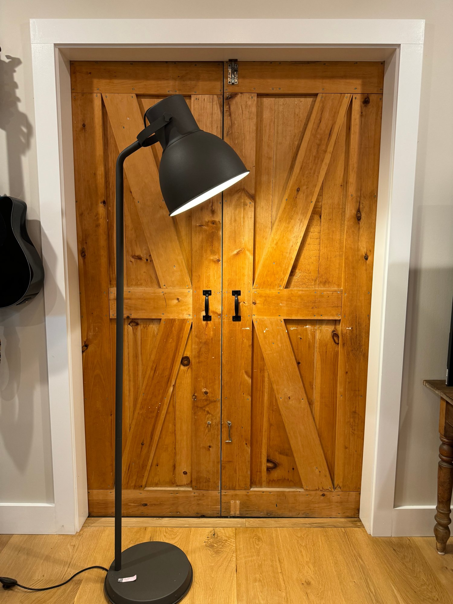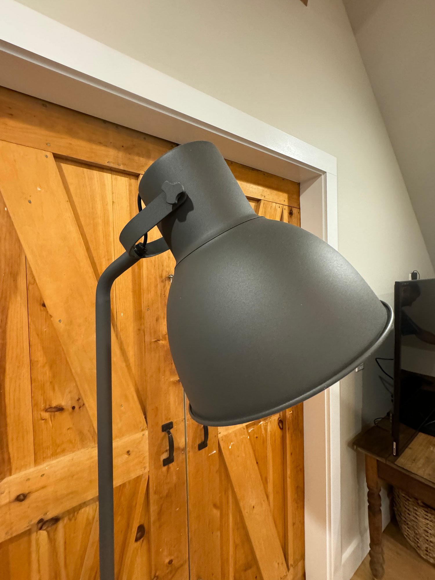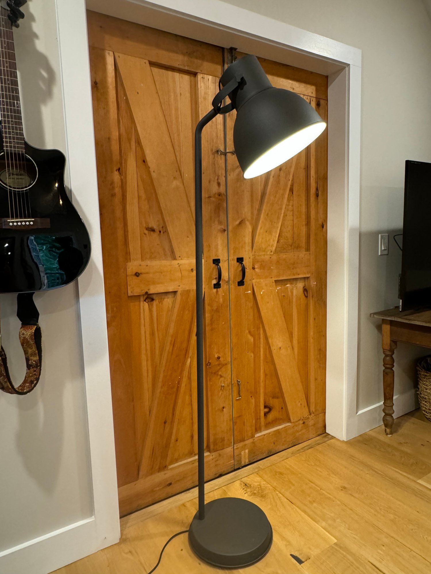 Handsome industrial style farmhouse floor lamp in metal.