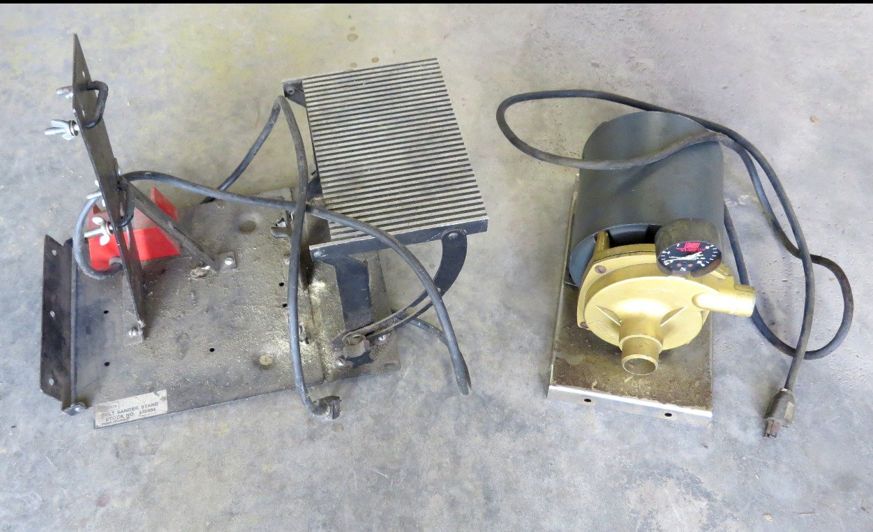 A GE Electric Motor and Sears Belt Sander Table. Motor has been rigged with a pump of some sort on the end but can be removed, working.