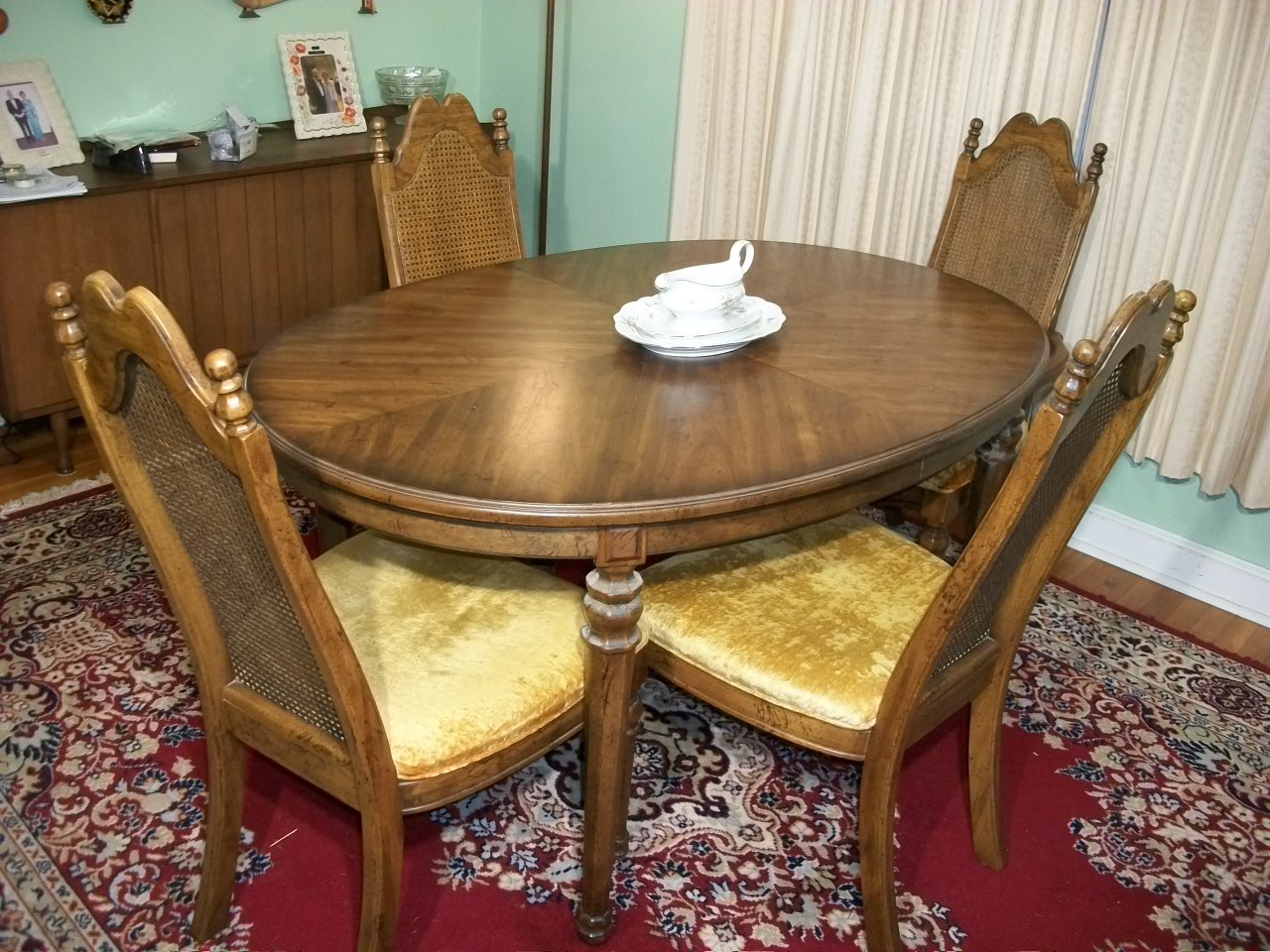 nice set. . . .very clean. . . .one leaf. . . .gold crushed velour seats. . . . 55 1/2" x 29 1/2" x 38 1/2" . . . . WE ARE SORRY BUT NO HELP LABOR AVAILABLE AT PICKUP . . . .PLEASE BRING PROPER VEHICLE, ROPE, DOLLYS, HANDTRUCKS, AND LABOR . . . . . Thank You for looking at our auction. . . . . . this is a really nice estate sale in Fairfield,CT (minutes from Merritt Parkway or I-95). . . .when the estate attorney called me to look at this house. . .to be honest . . .over the phone . . .It didn't sound very good. . . .WOW WAS I WRONG !!!!. . . .this is a MID-CENTURY TIME CAPSULE !!!!! . . .BUT these people were not Mid Century collectors or anything like that, they bought all these items as their everyday furniture starting in the 1950's - 1980's . . . . . . .this couple was married in and moved in this house in 1948 and they bought furniture and it NEVER LEFT THE HOUSE. . . .(he passed in 2014 at 91 years old and his wife just passed in September 2018 at 92 years old) . . . . . . EVERYTHING HERE IS "FRESH TO MARKET". . . . .no additions . . . .EVERYTHING is "original owner". . . .very well kept . . . .well cared for. . . . .this was a non-smoking,no pets,no kids household. . . .condition on everything is good to very good. . . .ALL furniture is on the 1st floor (easy access). . .all items sold as-is . . .you should expect MINOR issues, wear, dings, scrapes, scratches,etc. . . .all consistent with age. . .any MAJOR issues or glaring defects will be mentioned. . . . pickup is at the house in Fairfield,CT . . . . . . .ALL ITEMS START AT $1 . . . . . . . see you at the pickup in Fairfield,CT . . . . . GOOD LUCK BIDDING ! - HAPPY HOLIDAYS