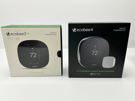 Two Ecobee smart thermostats: one Ecobee4 and one Ecobee3 Lite. Both appear to have never been used, but are missing some parts — please review all photos carefully to see exactly what is included.