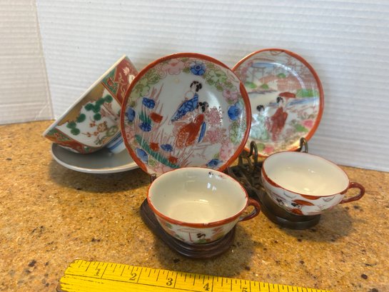 Geisha Girl ware these pieces feature hand-painted women in kimonos 1970s including stands as pictured
