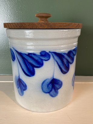 Eldreth Salt Glazed Pottery Wood Covered Crock Cannister