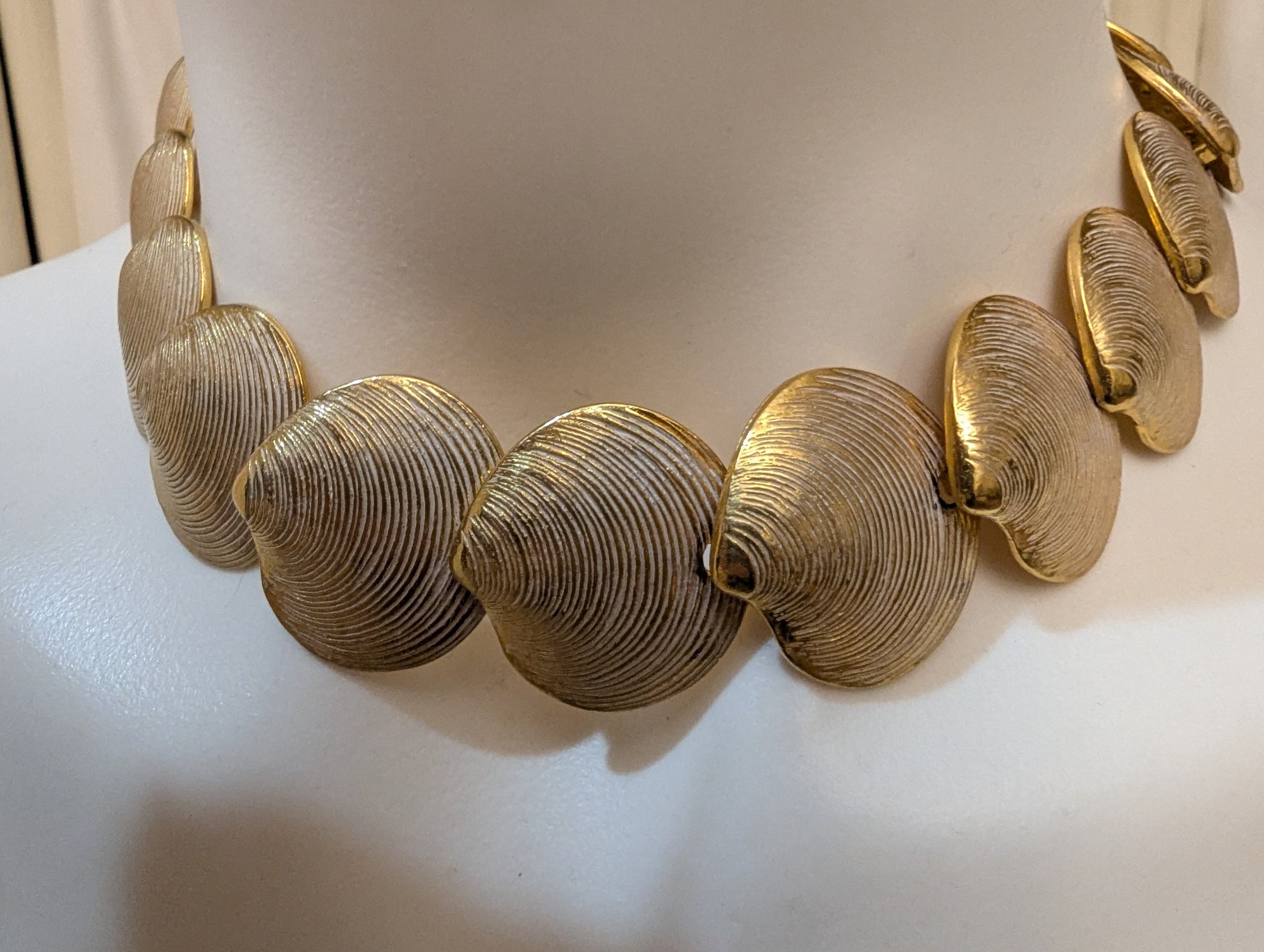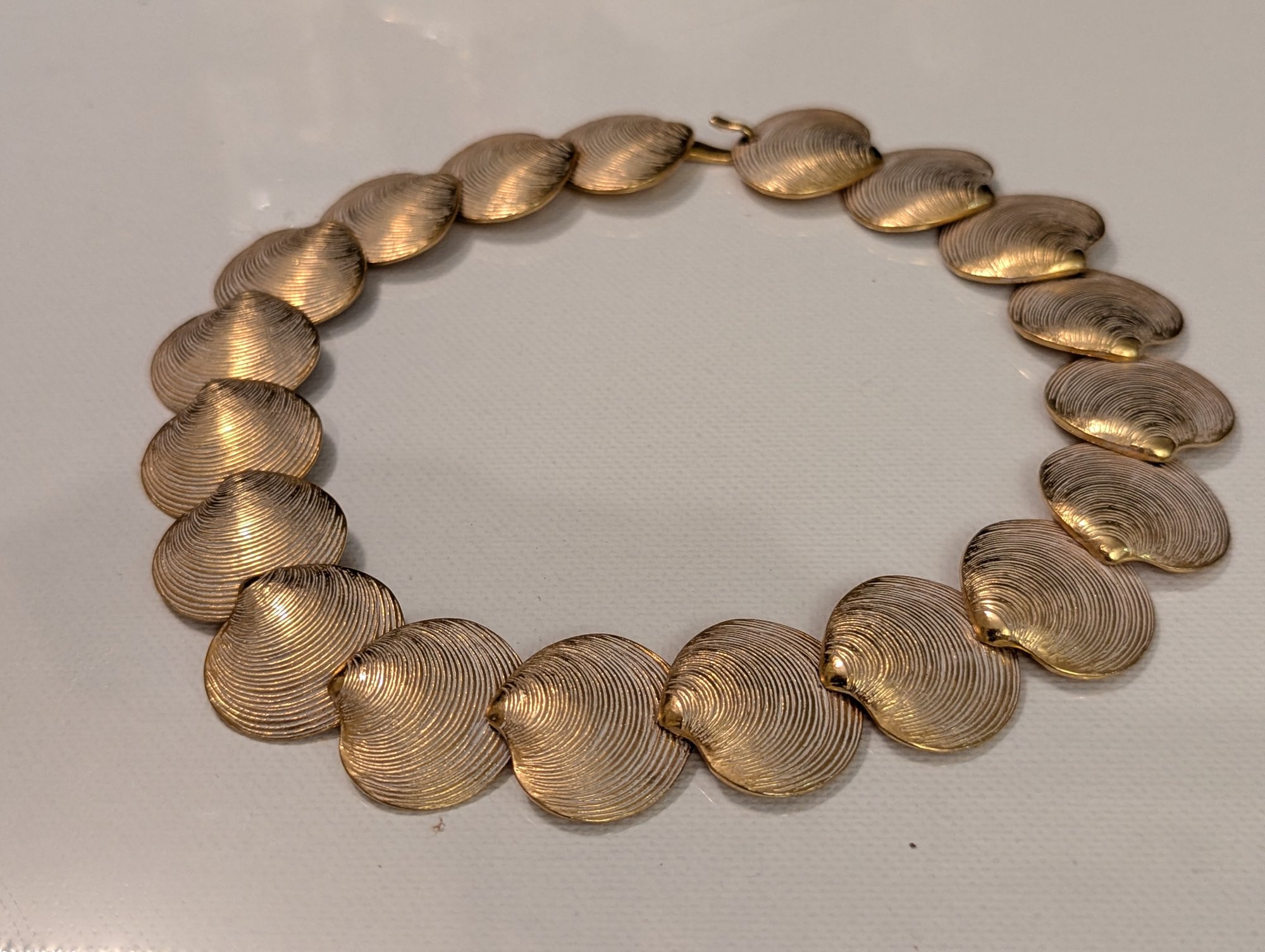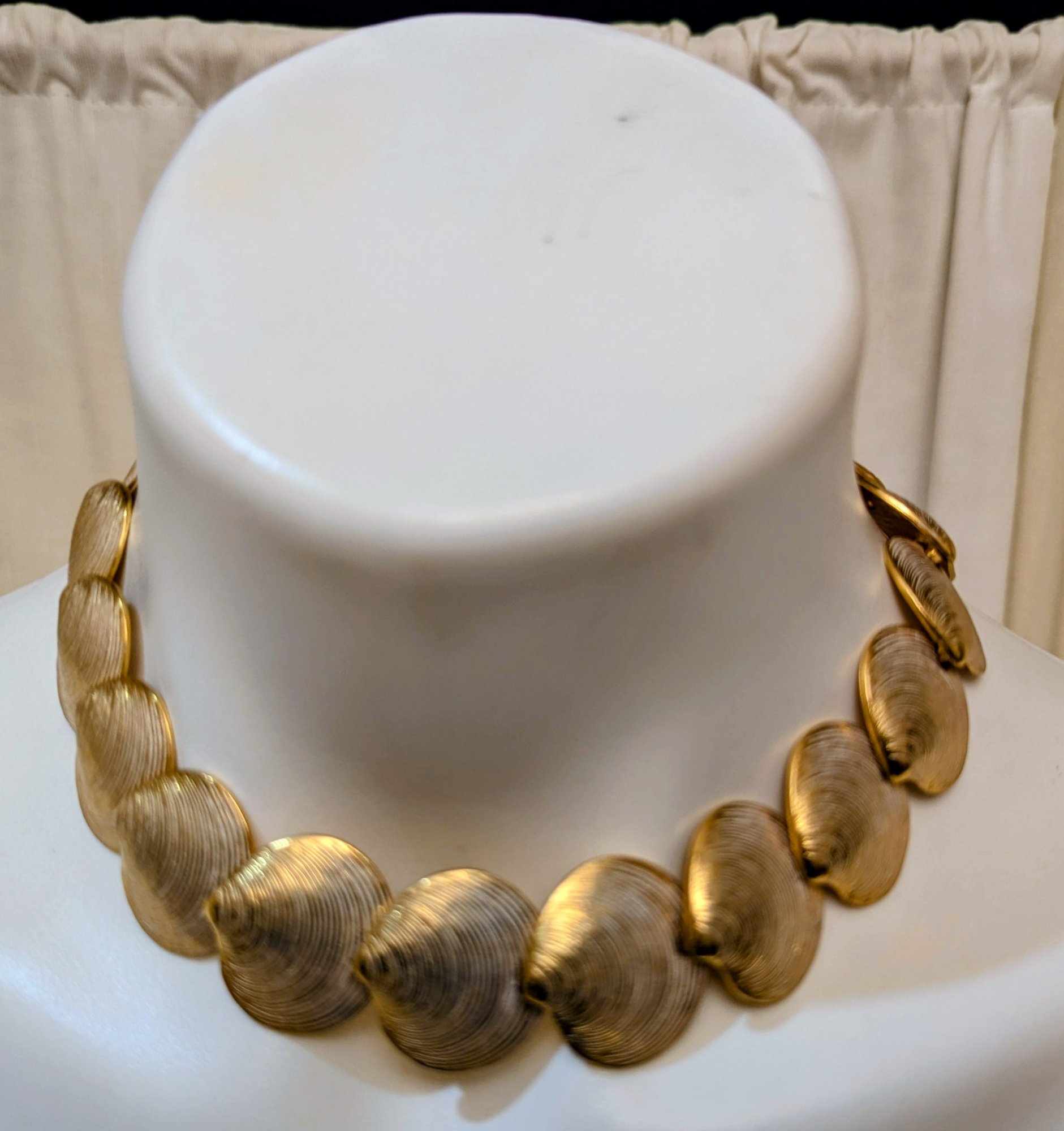 Elegant Nature Inspired Venus Clam Shell Gold Tone Necklace