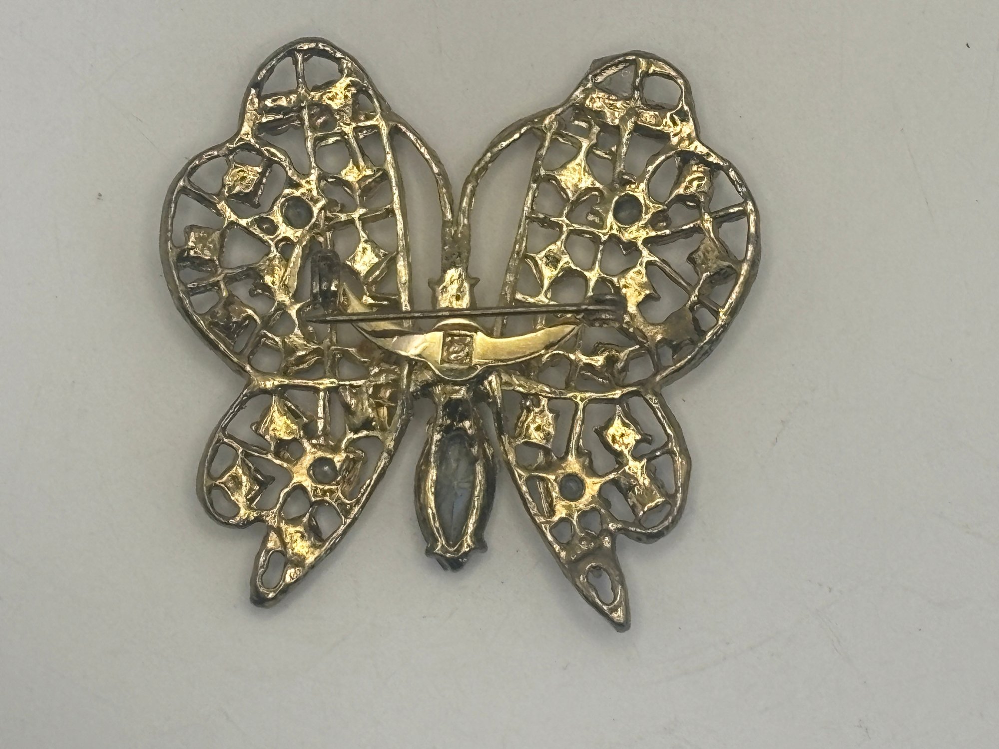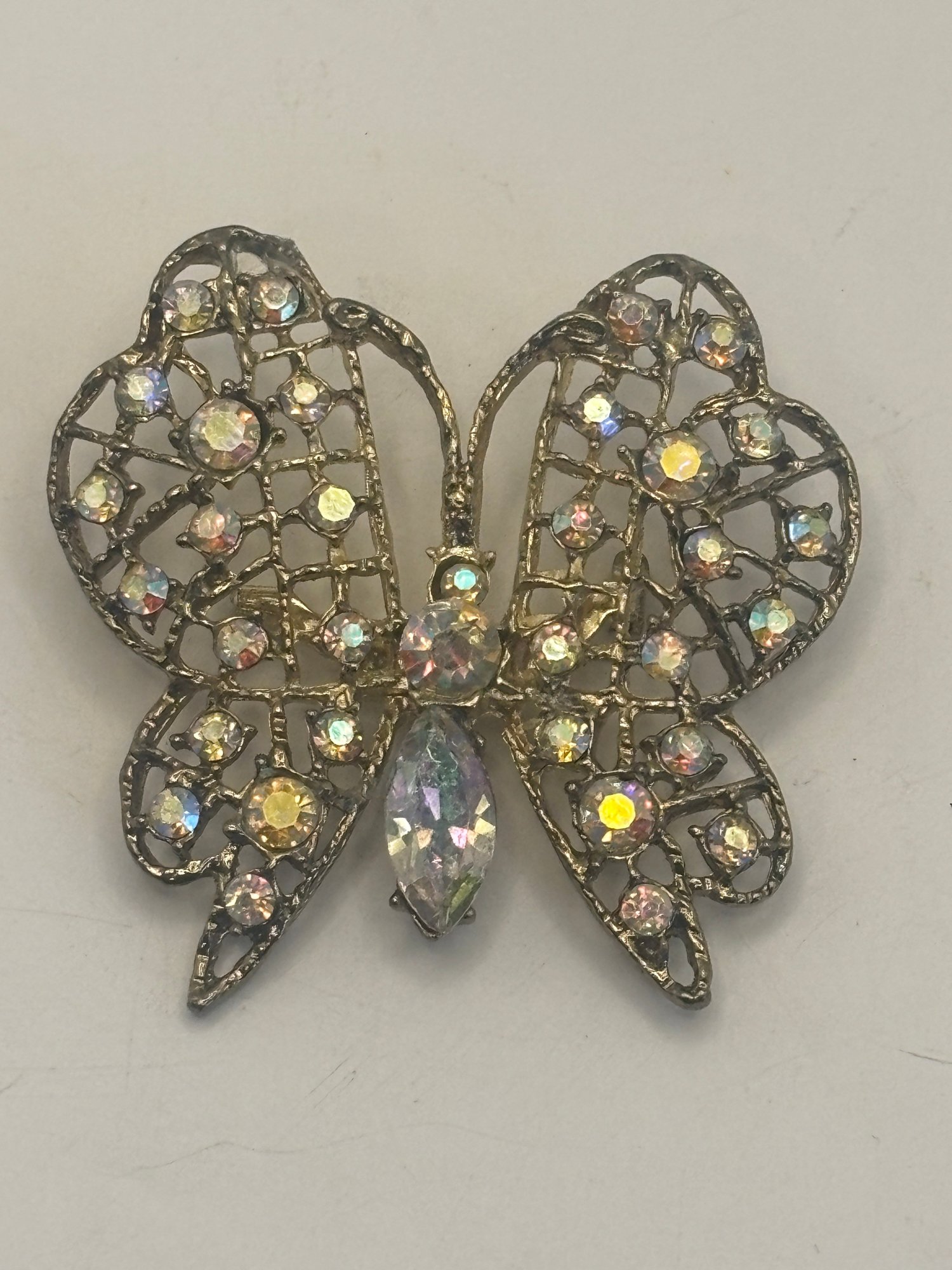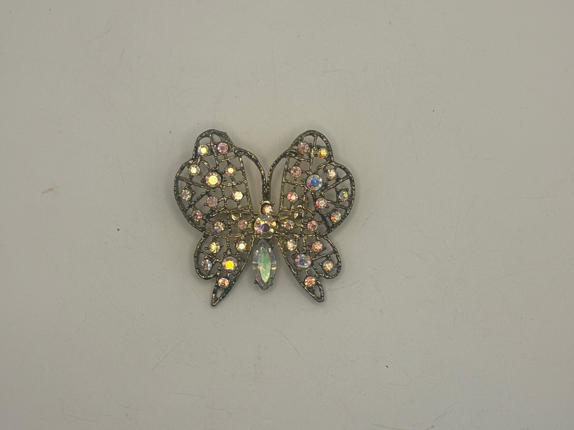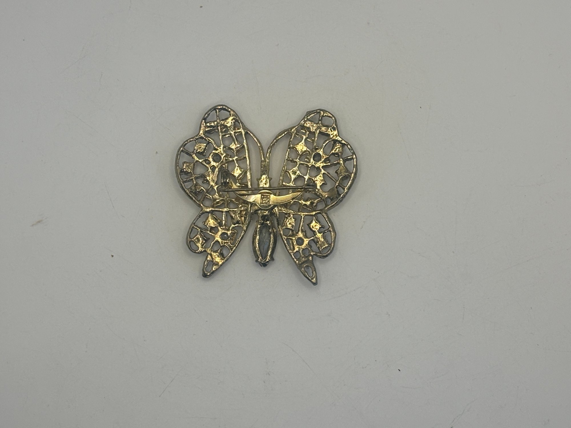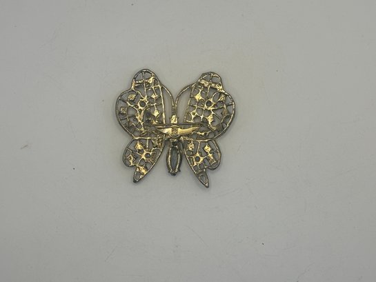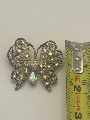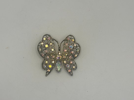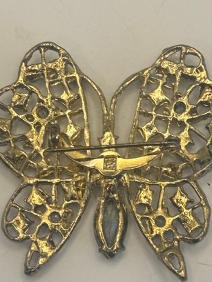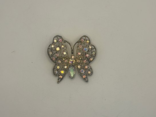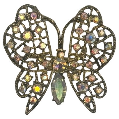 A lovely example of figural costume jewelry that balances sparkle with refined detail. Easy to dress up a jacket, scarf, or blouse, and a great addition for collectors of butterfly or rhinestone brooches.