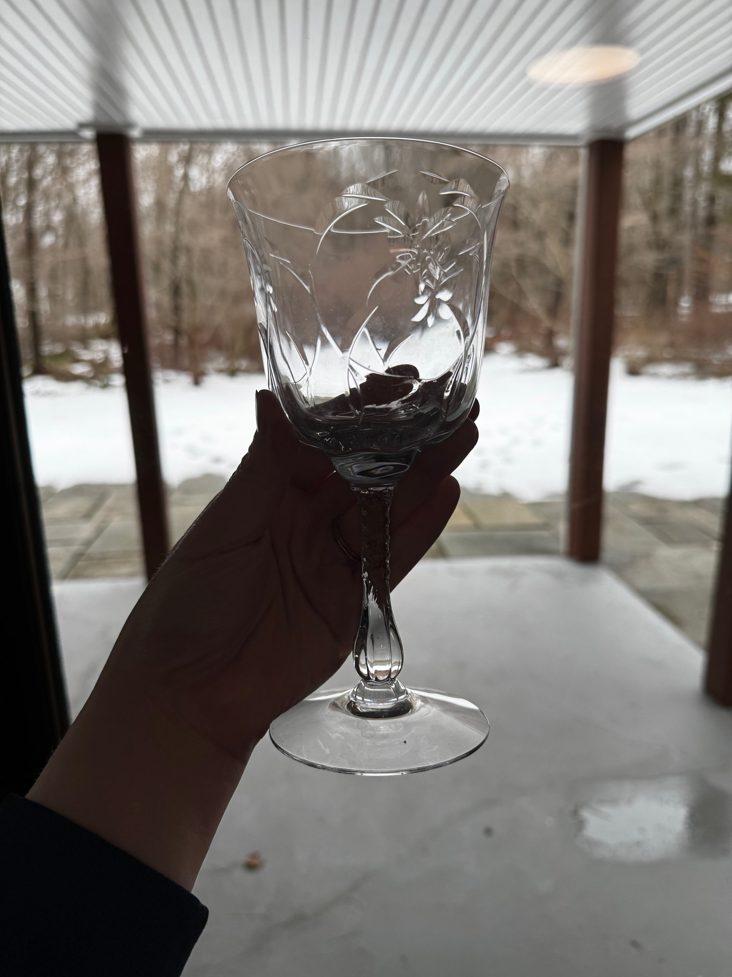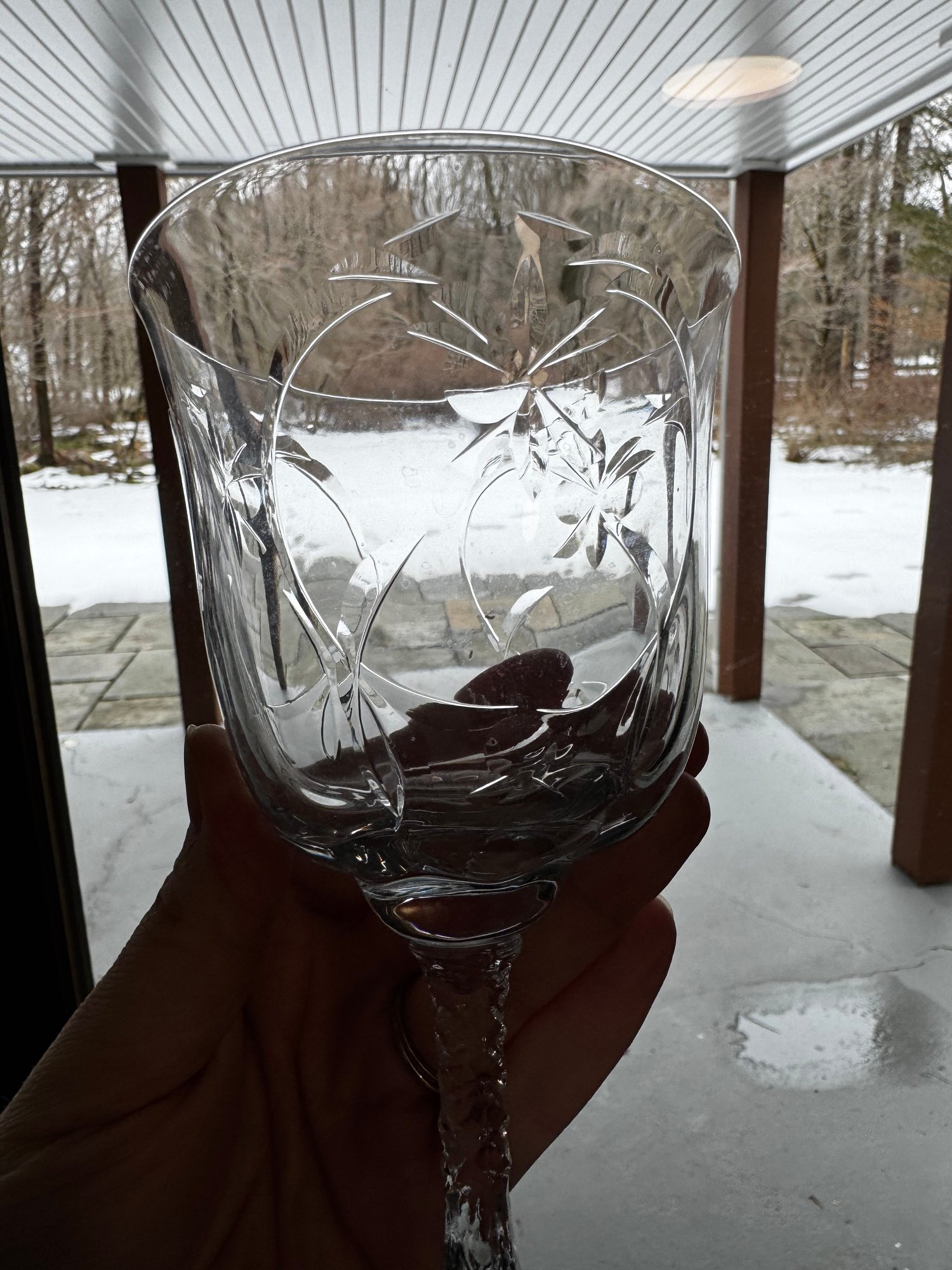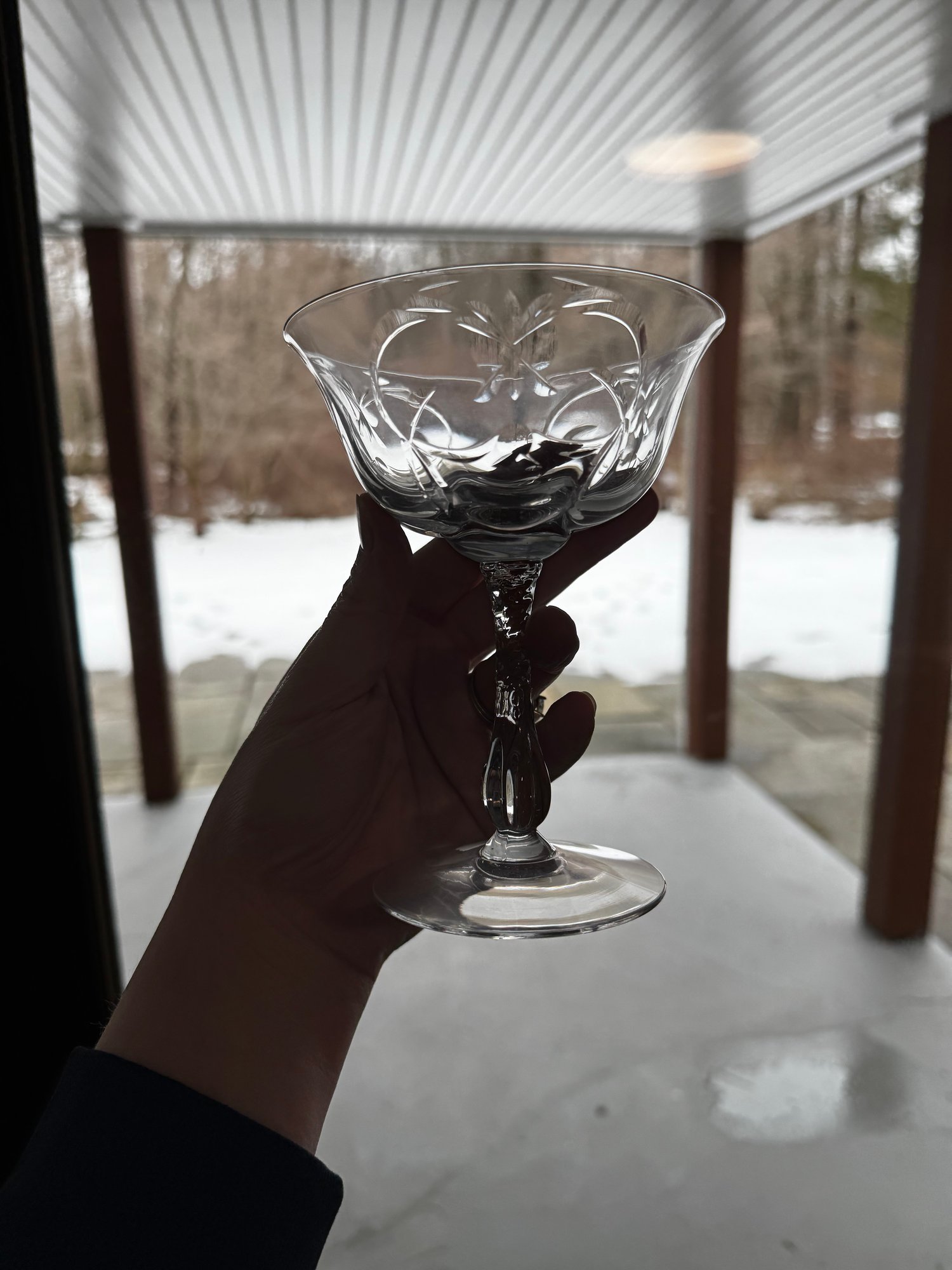Pretty stemware to gift or collect, likely Libbey or similar - 6 champagne 5.25"H / 5 wine 7.25"H