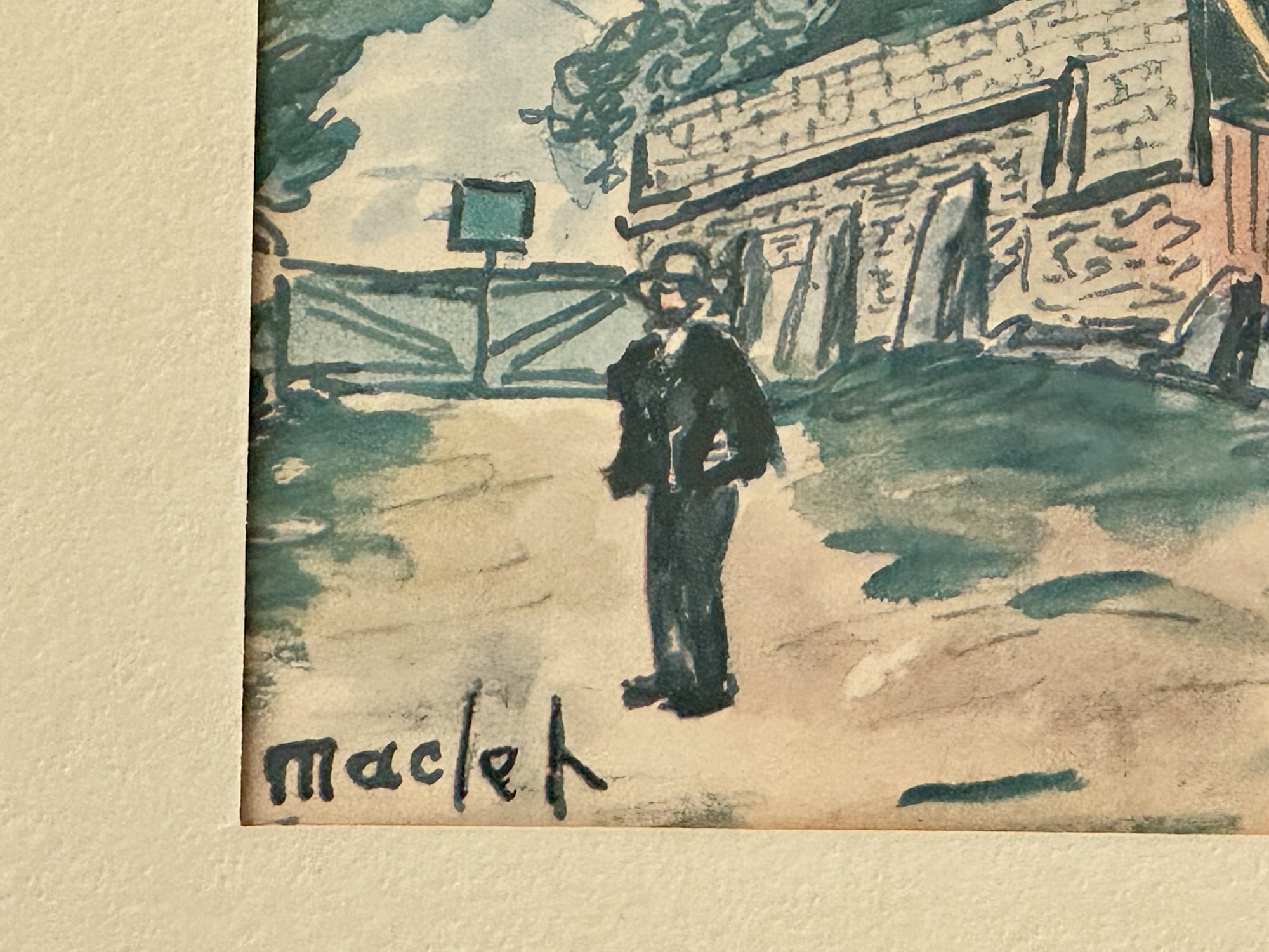Framed artwork by Jules Émile Élisée Maclet, the noted French Impressionist painter celebrated for his evocative views of Montmartre. Medium appears to be watercolor or gouache on paper but may be a fine are print. (not examined out of frame). Signed lower left “Maclet.”