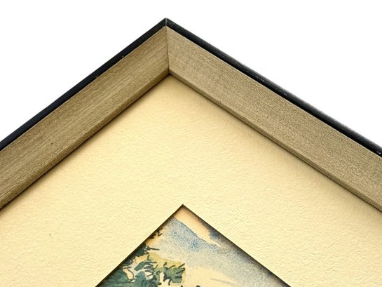 Note: Work shows light age toning consistent with vintage works on paper. Frame and backing exhibit wear and moisture rippling to backing paper (not examined out of frame).