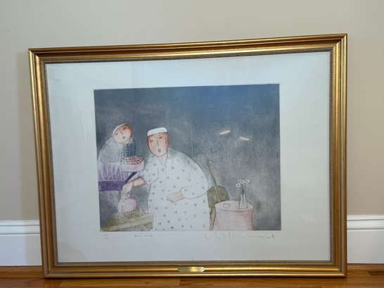 Eng Tay "Homework" Pencil Signed & Numbered Original Color Lithograph
