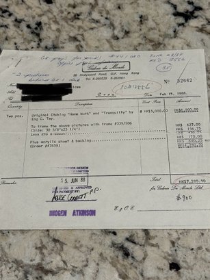 Receipt included in the photos; this was purchased in Feb 1988. It was purchased at a gallery in Hong Kong. Appears to be in Hong Kong currency (HK).