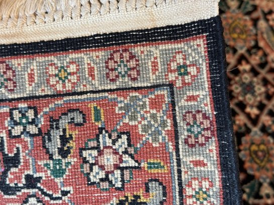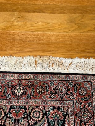 Genuine Hand Woven Wool Rug Runner with Floral Motif and Rust Border