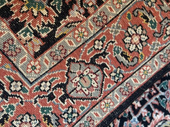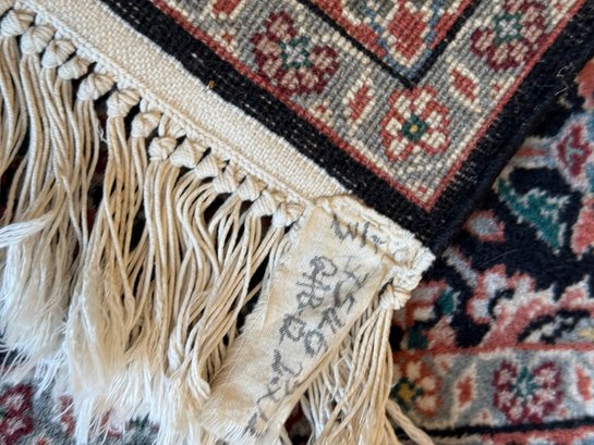 Hand-knotted construction with wool pile and hand-finished fringe. A timeless decorative rug offering traditional Persian-inspired styling.