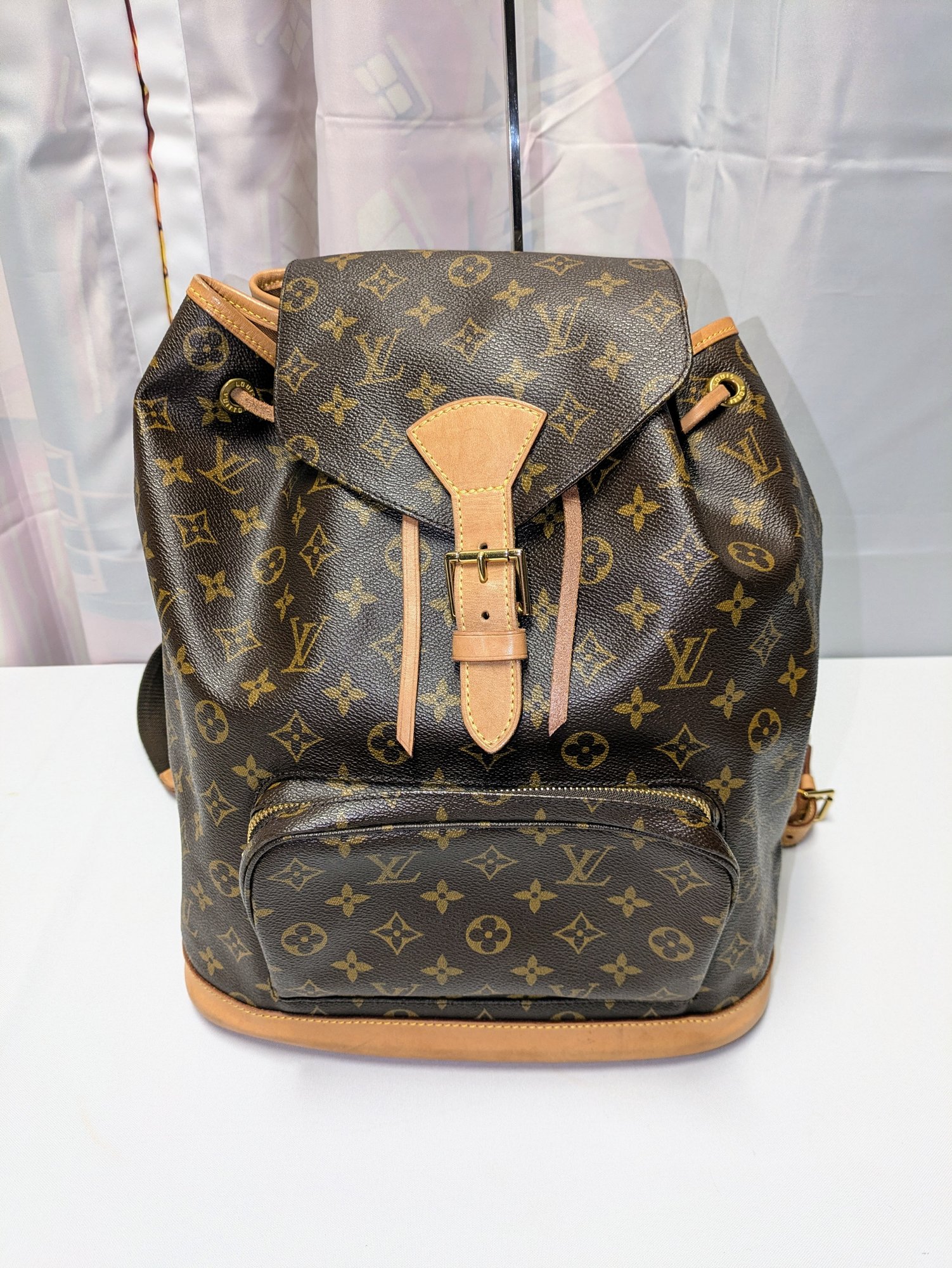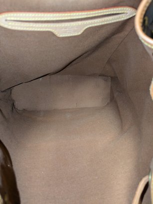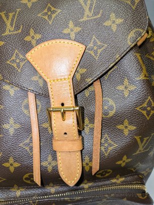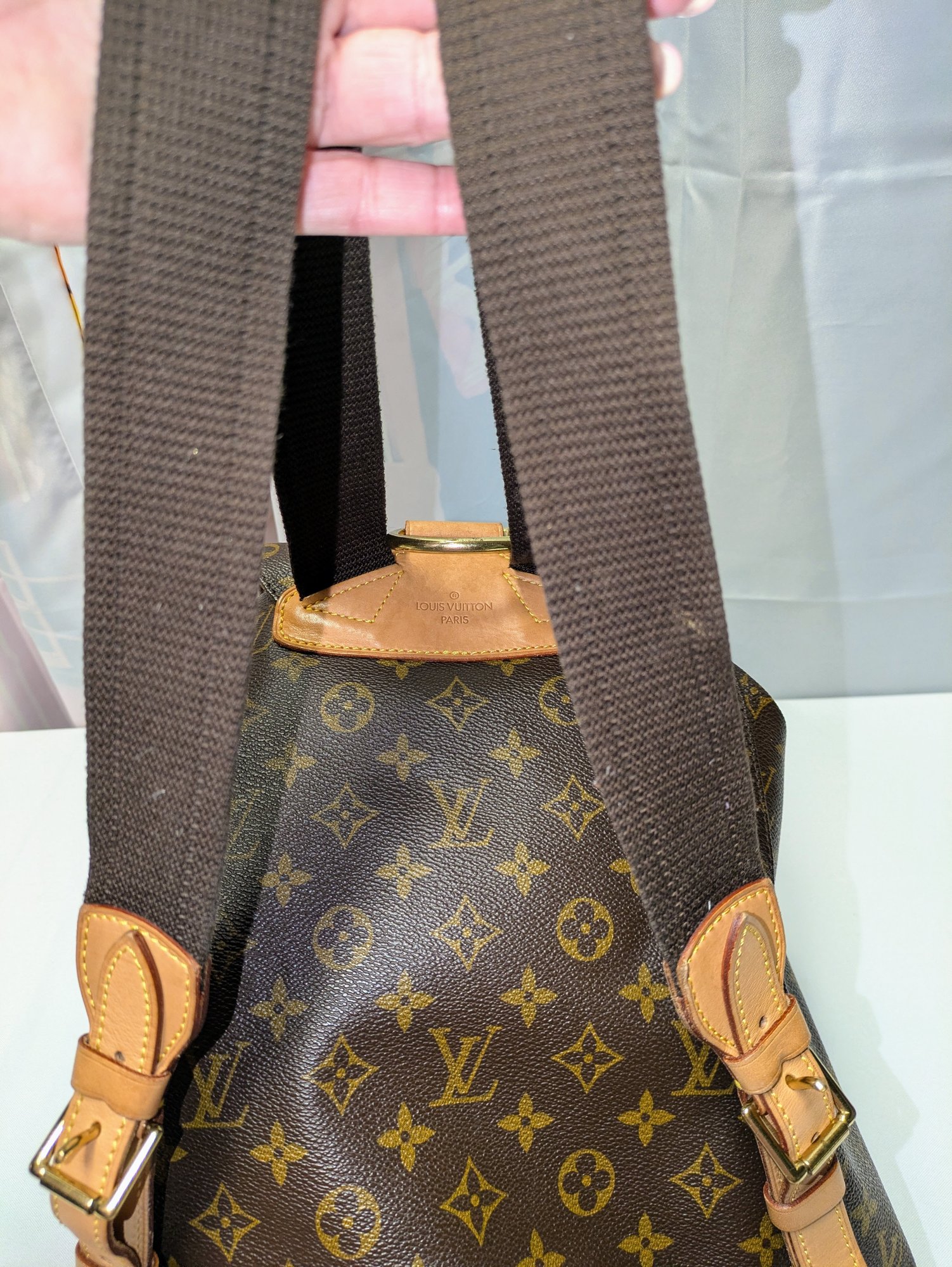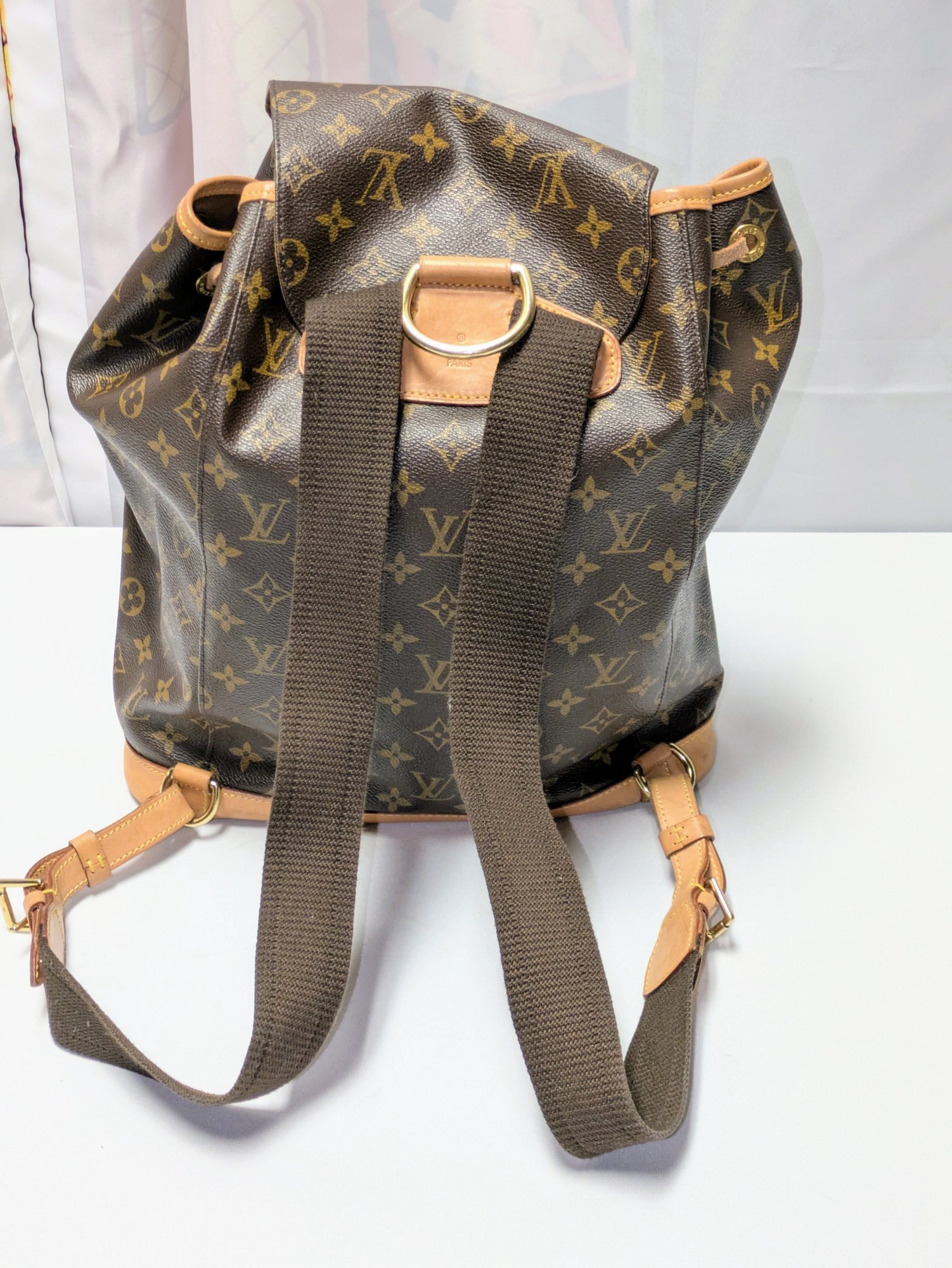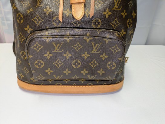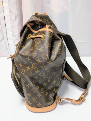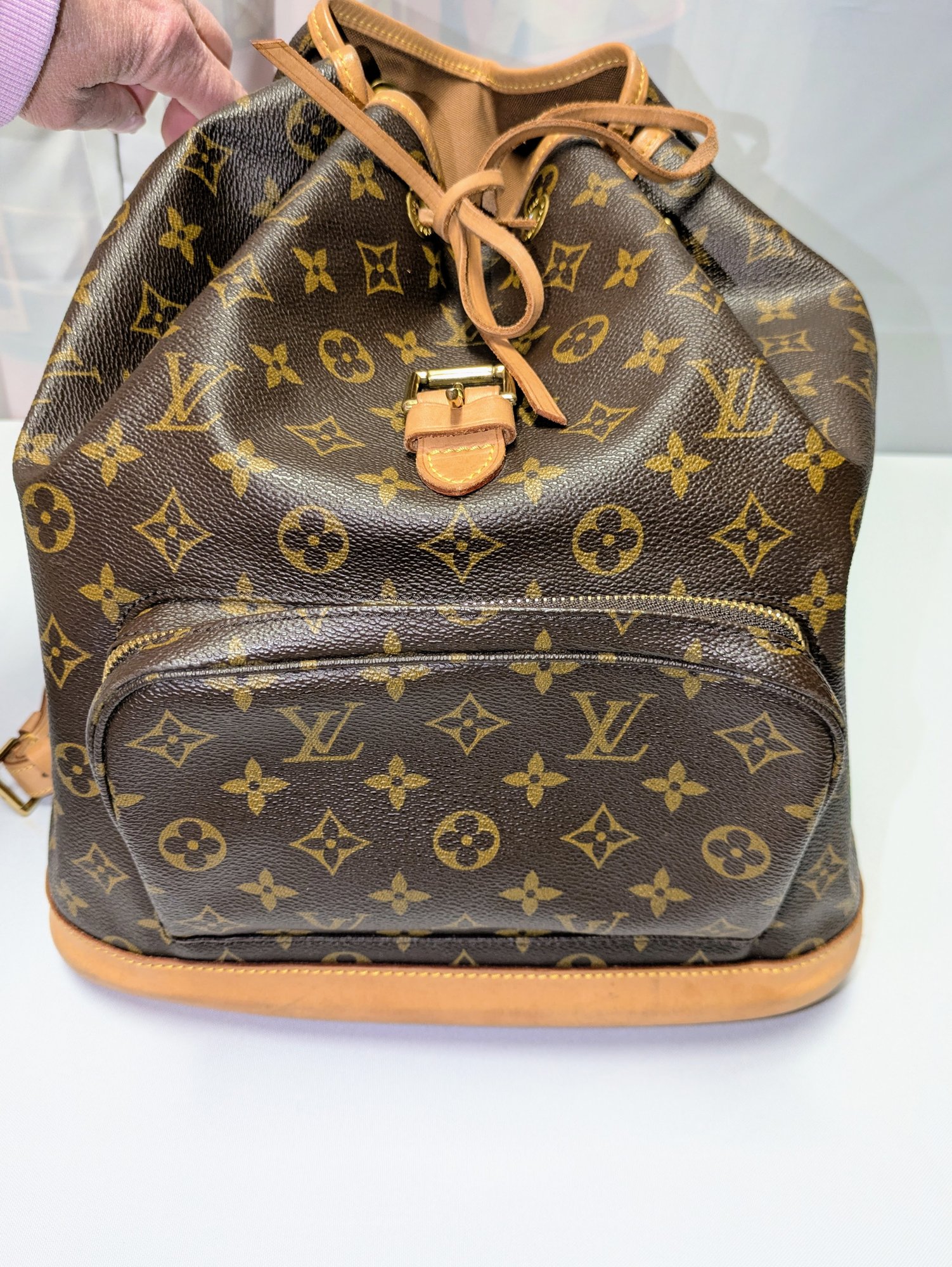 Well Taken Care of and Loved, Gorgeous and Sought After, the Montsouris MM backpack in Monogram-coated canvas was inspired by the Louis Vuitton Montsouris bag, created in 1994. The backpack has a front zipped pocket and secure drawstring Monogram coated canvas, Cowhide-leather trim, Textile lining, Gold-colored hardware, Drawstring and magnetic closure, Metal eyelets, Front zipped pocket.t Fits: smartphone, keys, 13-inch laptop, wallet, and earphones. Callouts: Exterior: Slight watermarks and slight rubs on vachetta, and some light rubs on the trim. The Interior: A couple of light marks, all consistent with age and use. Overall, Very Good Condition. Please see all photos before bidding, as part of the description and condition. Straps: Not removable, adjustable. Strap drop: 14.6 " & Strap drop max: 15.0 " / Bag 14"H x 12" W x 5"D.