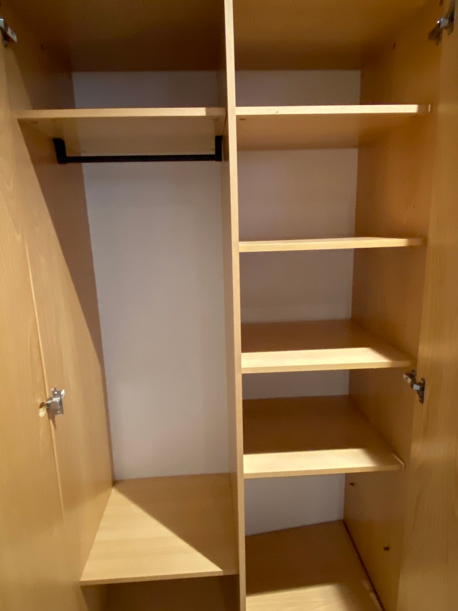 Interior storage shelves and clothing closet