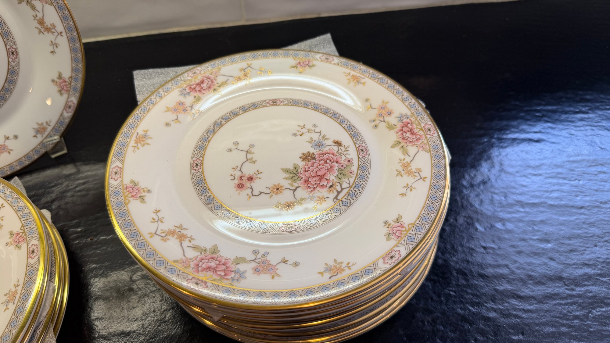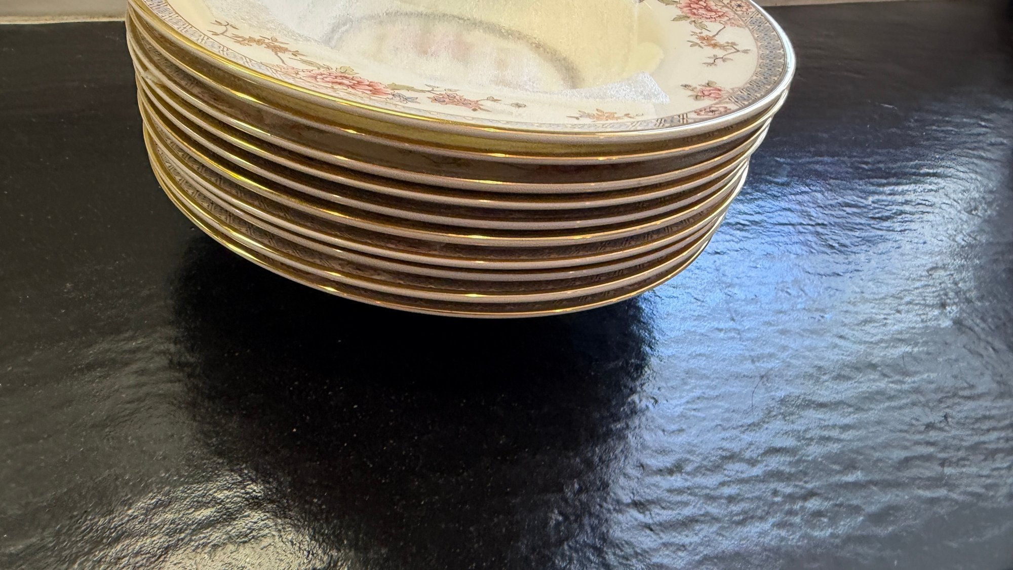 All in very good condition consistent with age and use. No nicks or chips and very very little loss of gold.
