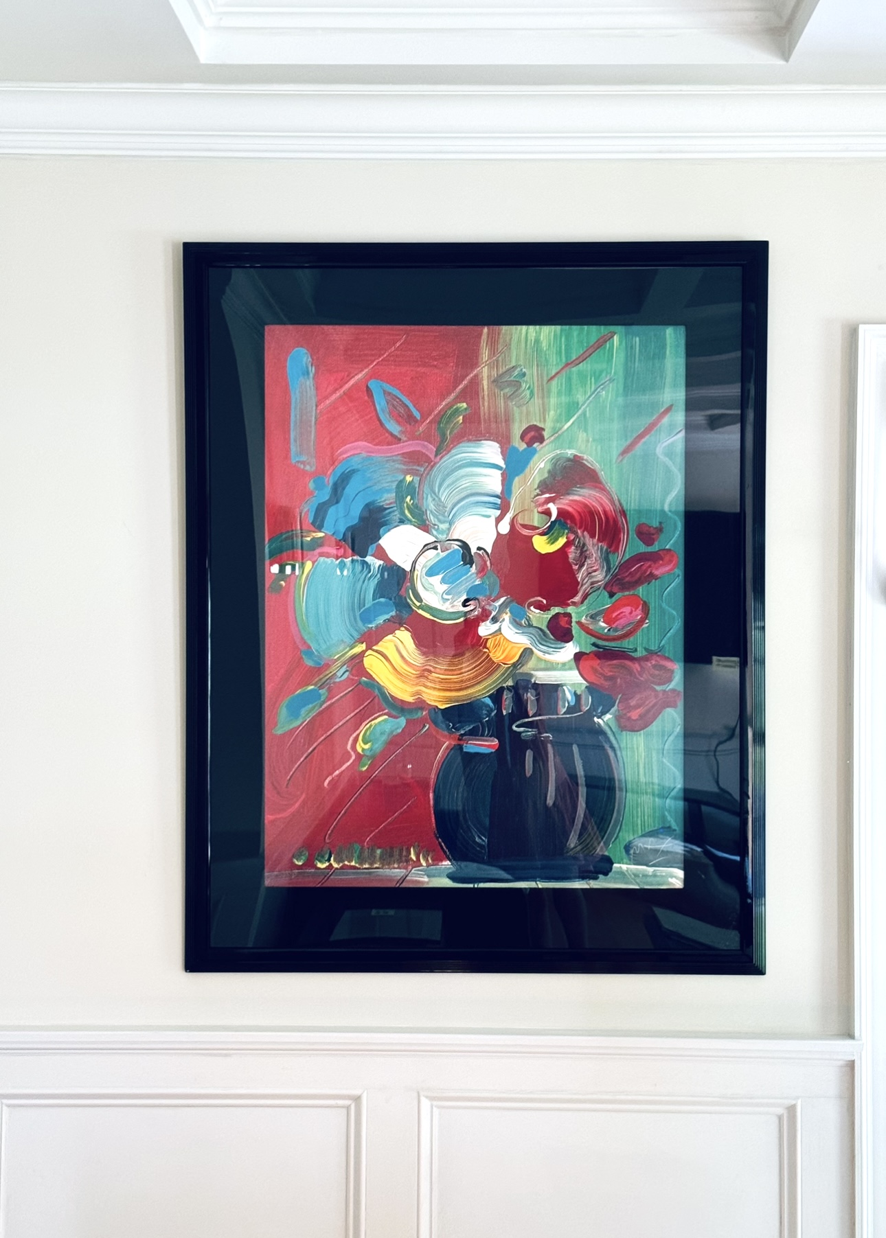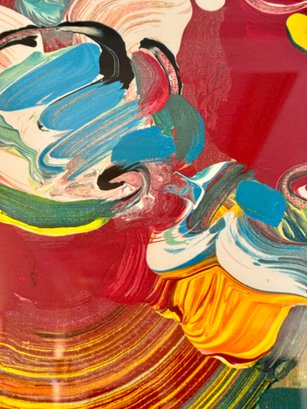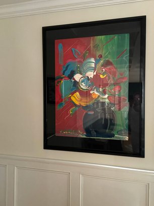 This beautiful Peter Max Serigraph on paper is Signed and Numbered and includes a Certificate of Authenticity from the Merrill Chase Gallery where it was purchased in 1992. Its year of publication was 1991 and is from a Limited Edition Numbered 109/300 and printed by Soma Fine Arts / Hanson Art Publishing. The print has been custom matted and framed in a black lacquer high gloss frame that works to highlight the colorful imagery. It was purchased together with 'The Roseville Suite' Serigraph for sale in this auction and have hung as a striking pair in this modern home office. The condition is in excellent condition has been well loved and cared for.