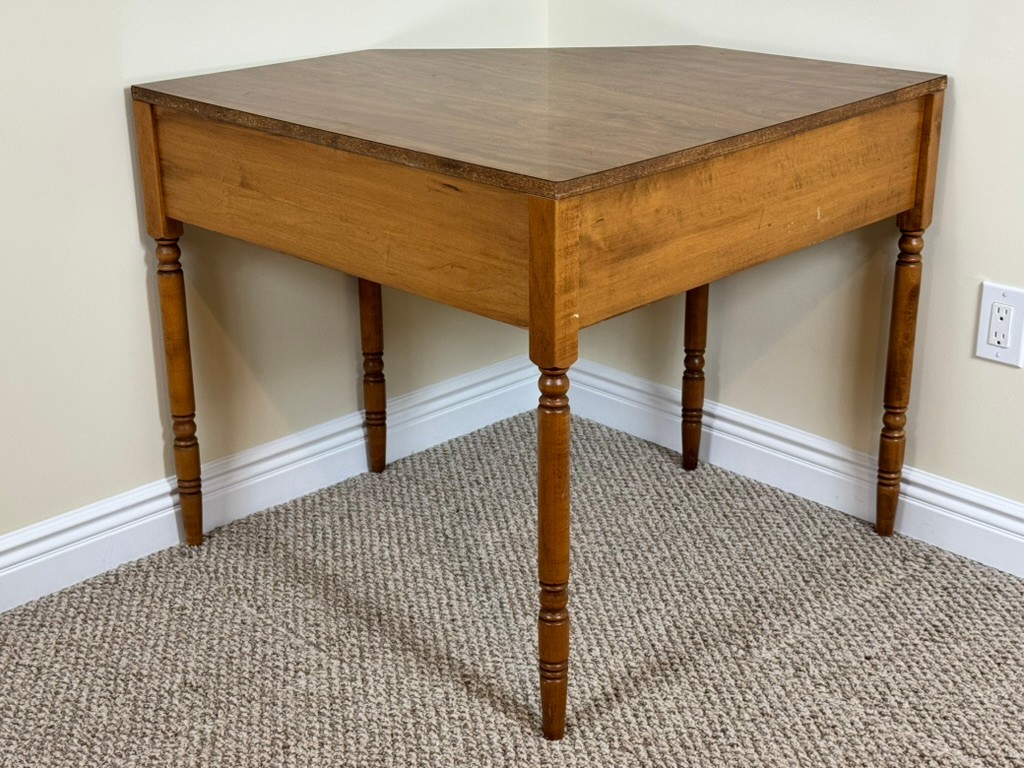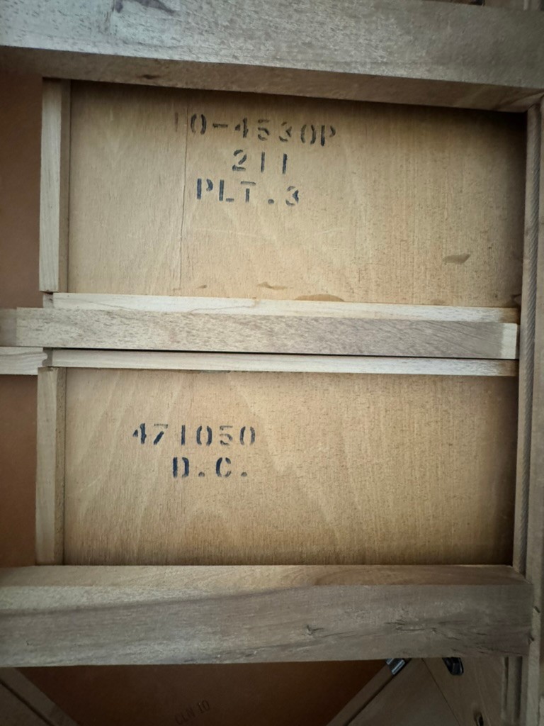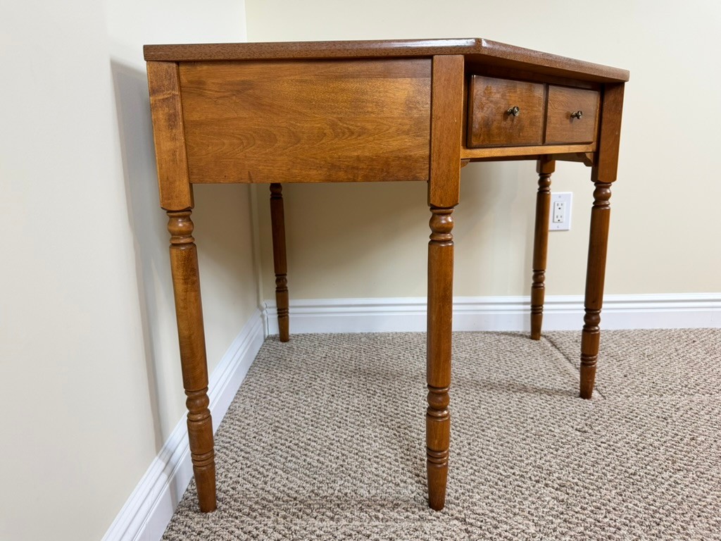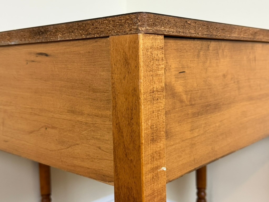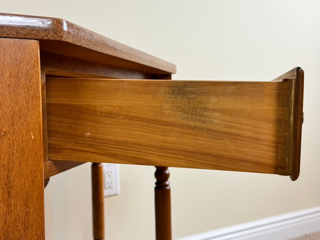 Note: Can be disassembled for transport with the proper tools. Vintage condition with light wear consistent with age and use. Minor surface marks and finish variation present. Structurally sound with smooth drawer operation.