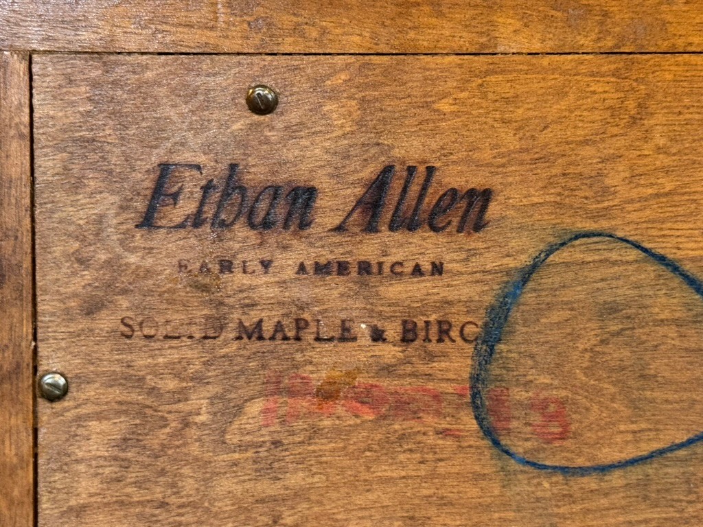 • Stamped on back: Ethan Allen – Early American – Solid Maple & Birch