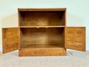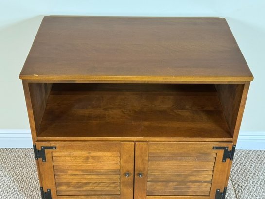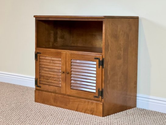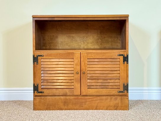 Vintage Ethan Allen Early American cabinet crafted from solid maple and birch, featuring warm honey-toned finish and classic colonial styling.