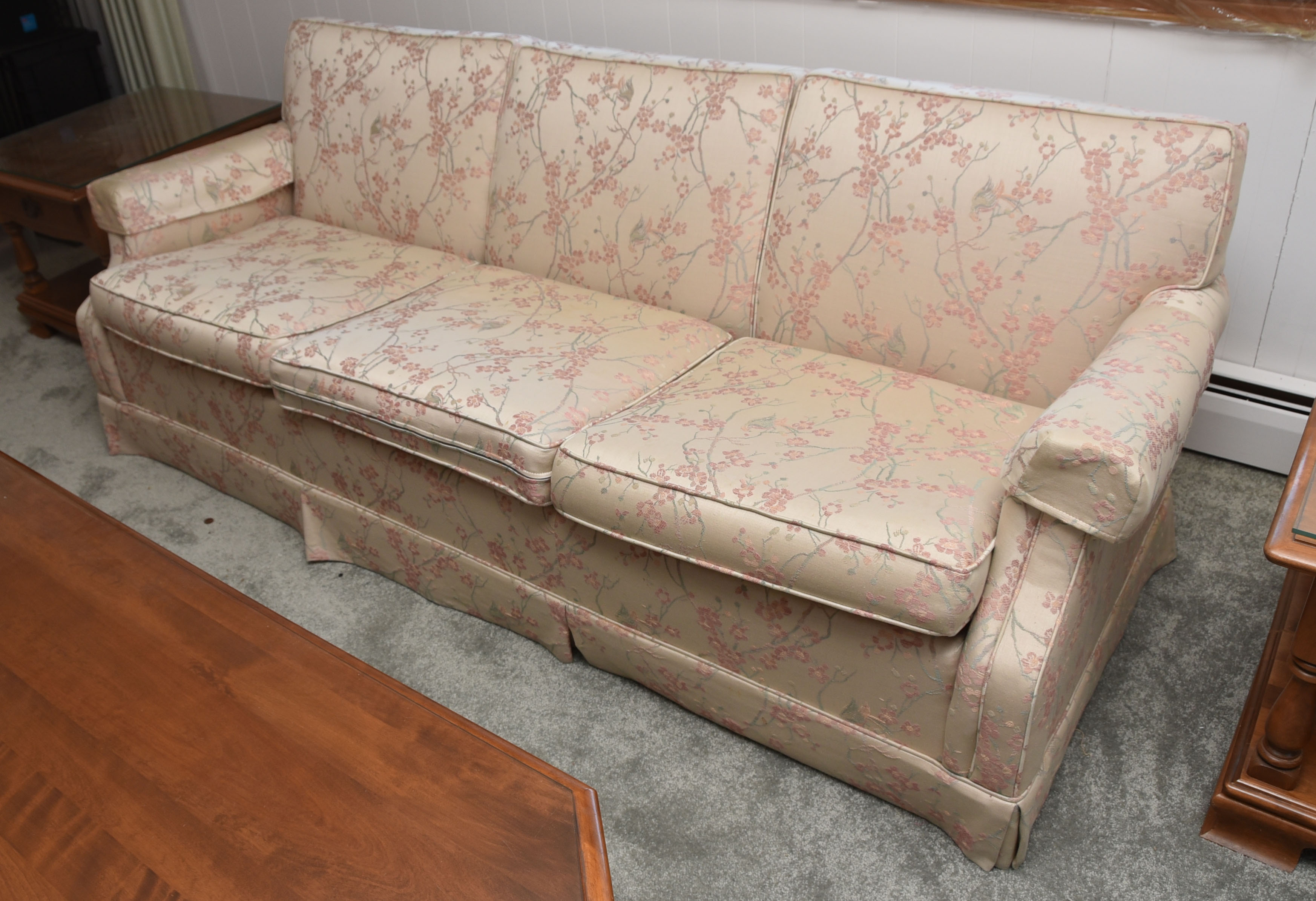 The couch is in excellent shape as it was kept covered during use. 80” l x 30” d x 28” h