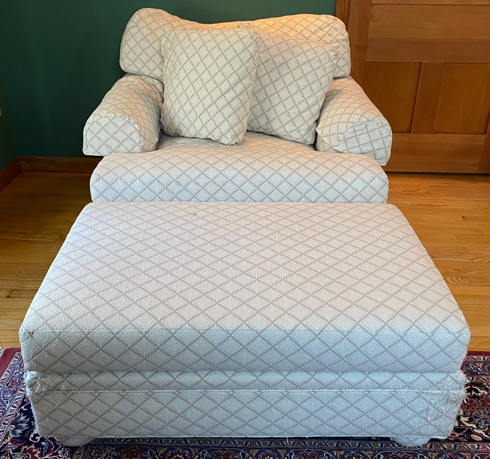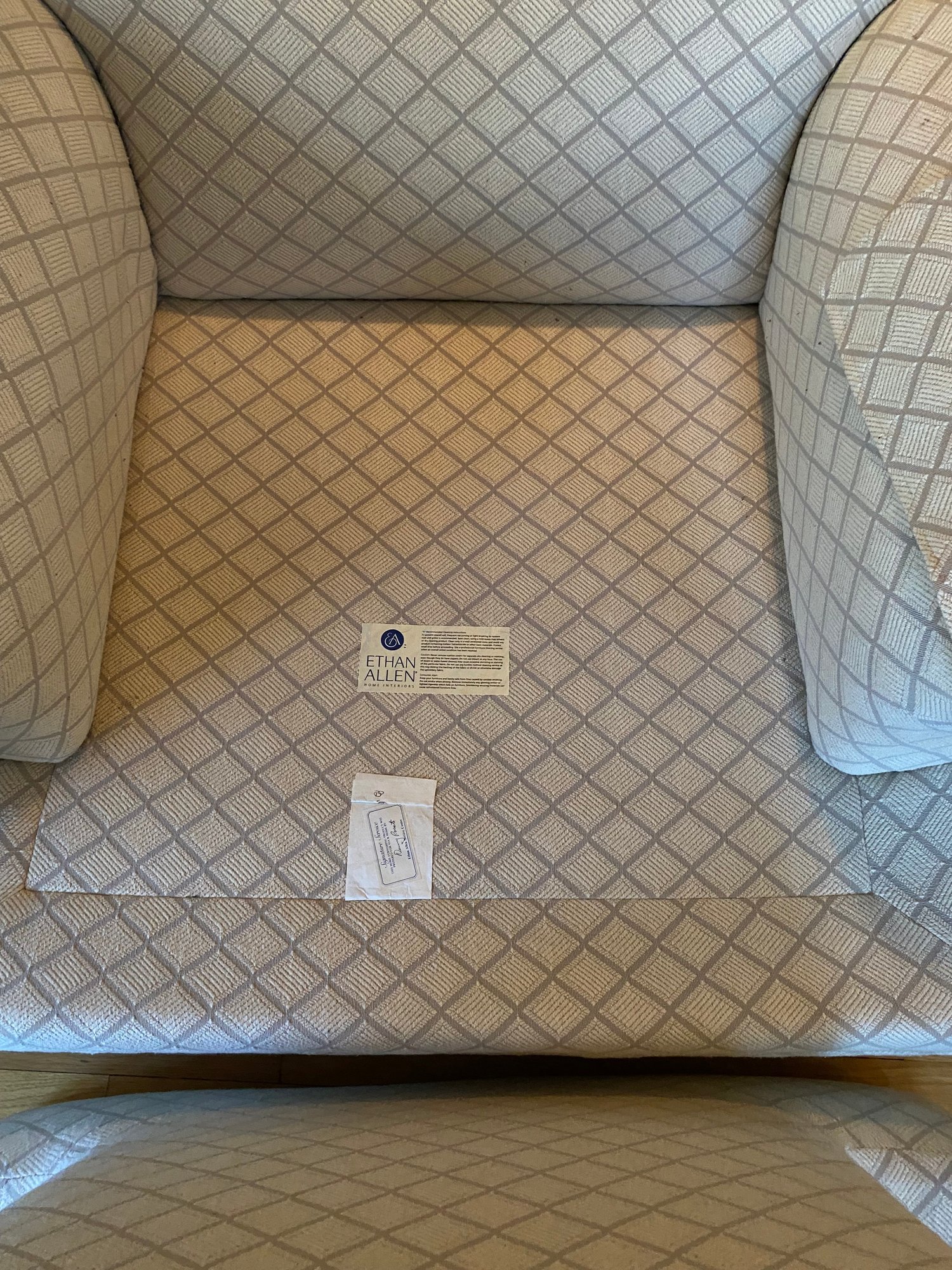 Ethan Allen Upholstered Arm Chair And Ottoman