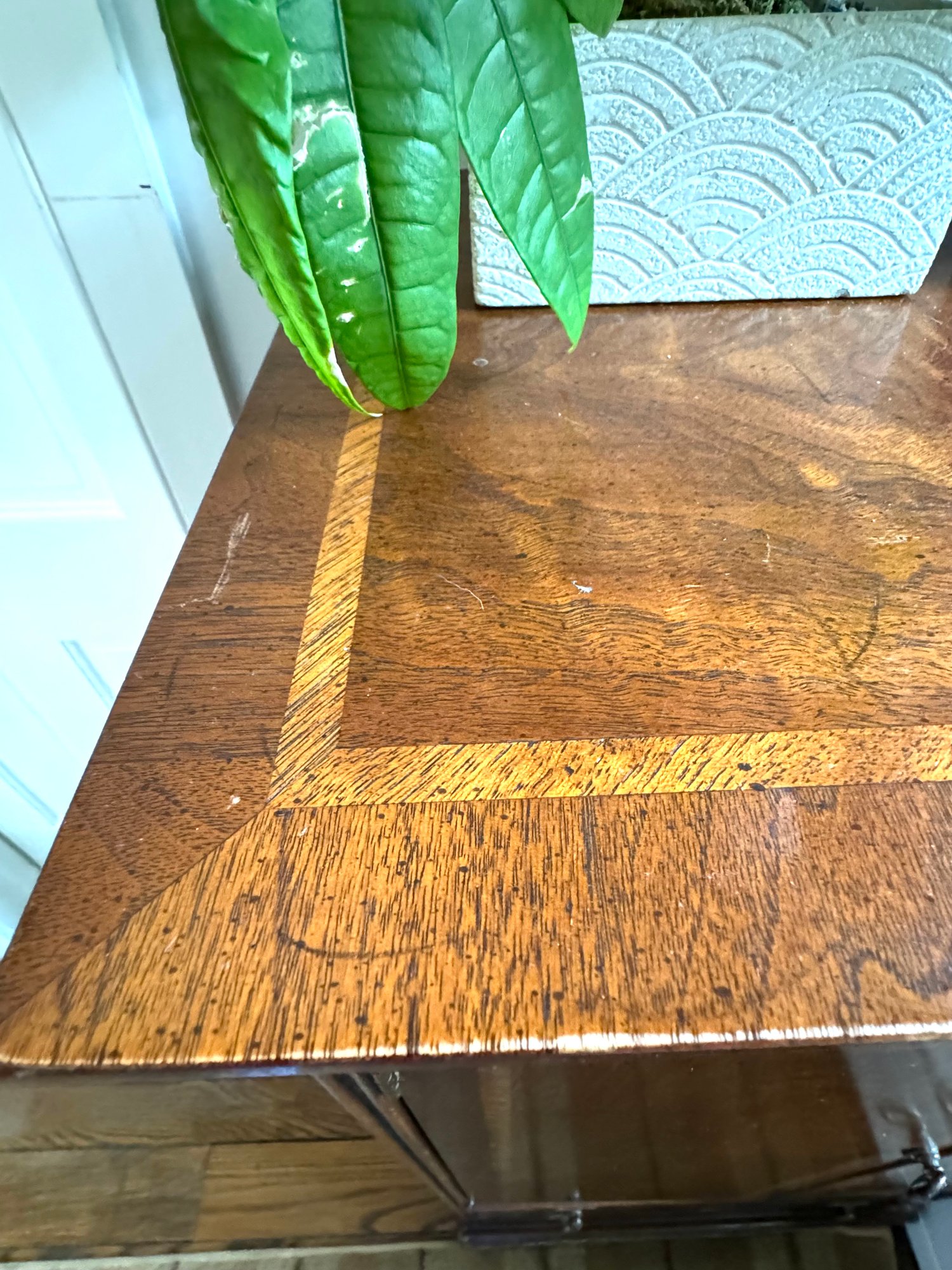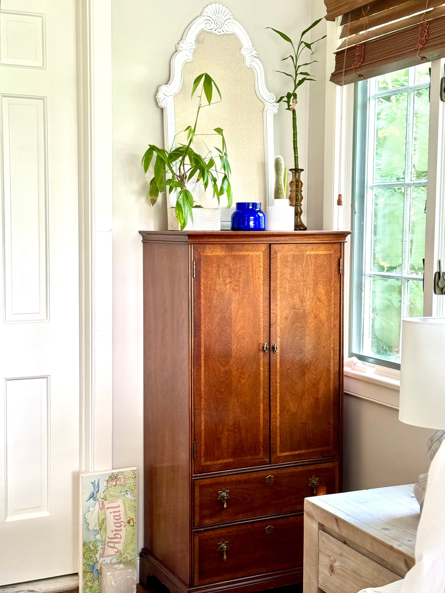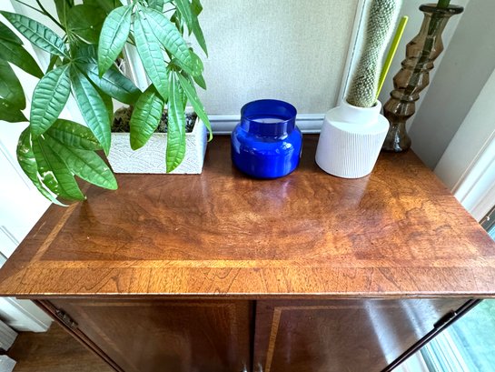 storage shelving. Has some minor top wear and overall in nice condition - a polish will help restore woods beauty. It’s petite size make it perfect for bedrooms or vanity areas.