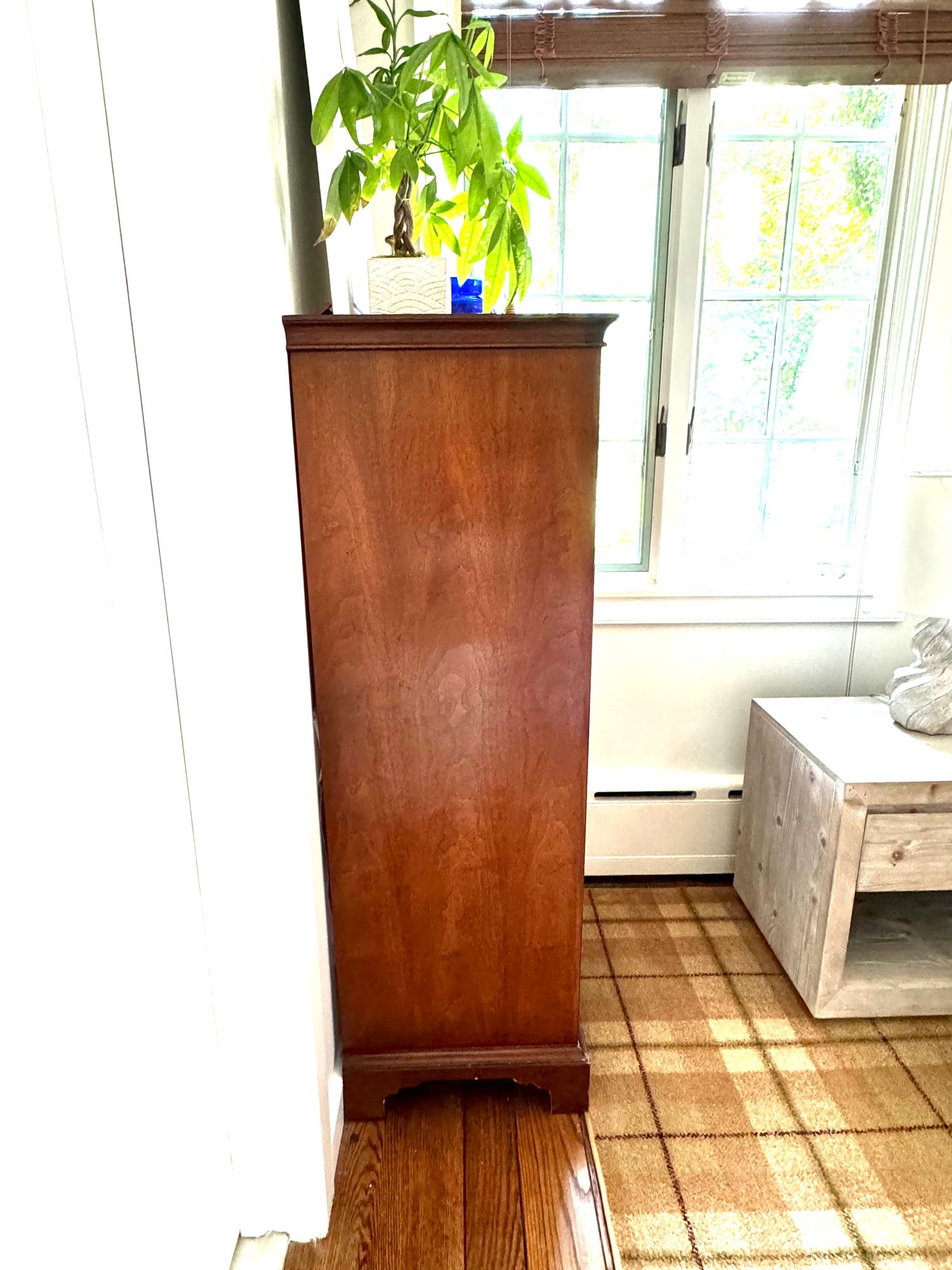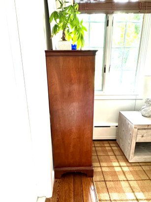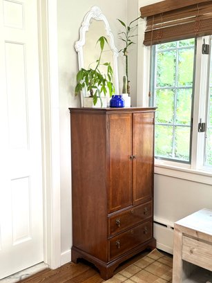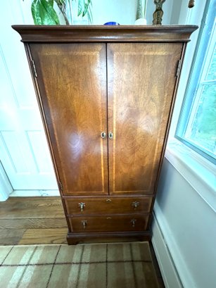 Adorable petite flame mahogany cabinet with two bottom