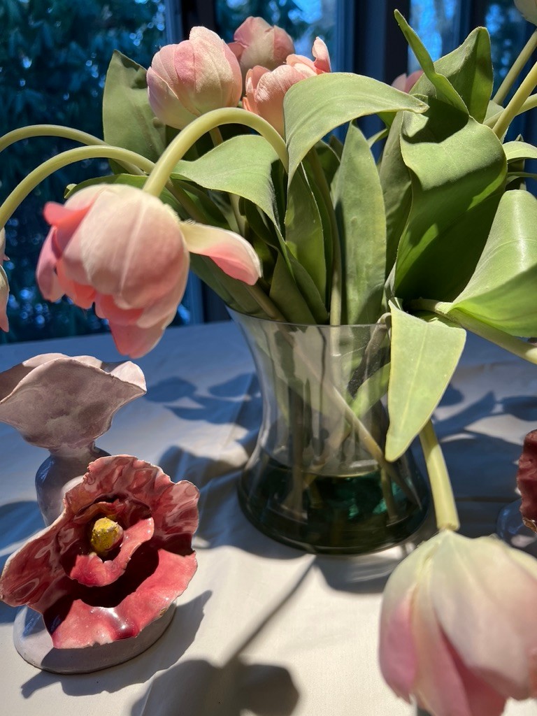 Real like tulips in a vase with candlesticks in floral, never to be watered! East low maintenance