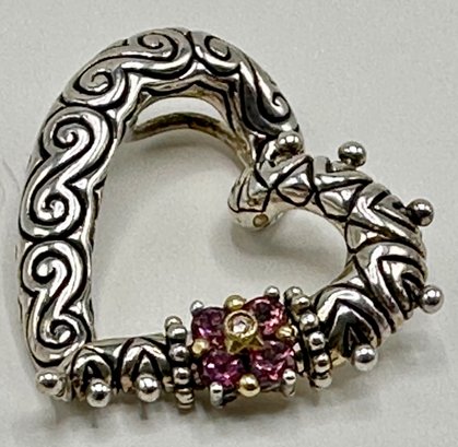 New Barbara Bixby Garnet, 18 Karat Gold & 925 Sterling Silver Heart Pendant, 1 Inch High