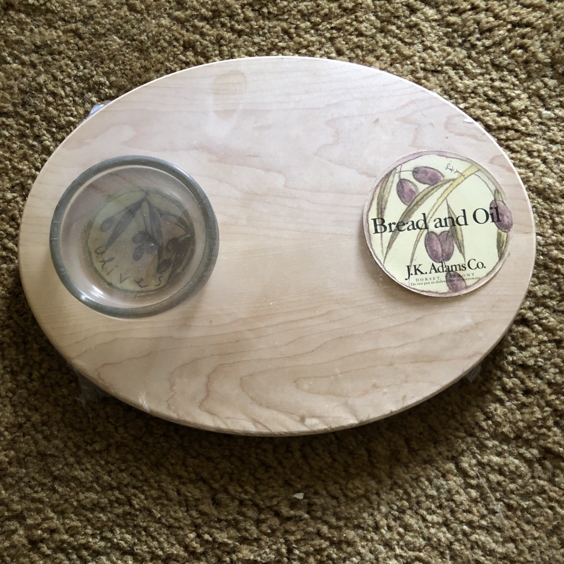 New Bread And Oil Serving Set. Wooden board with glass dipping bowl.