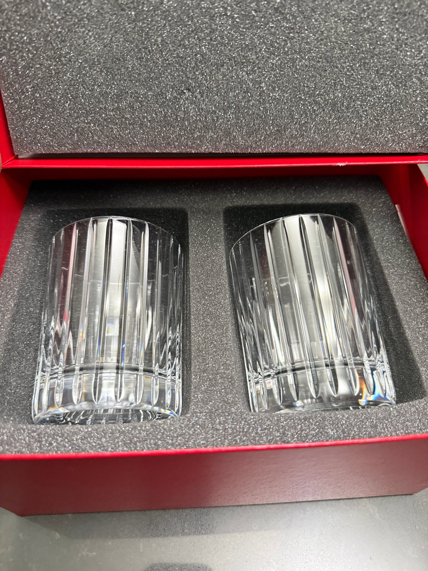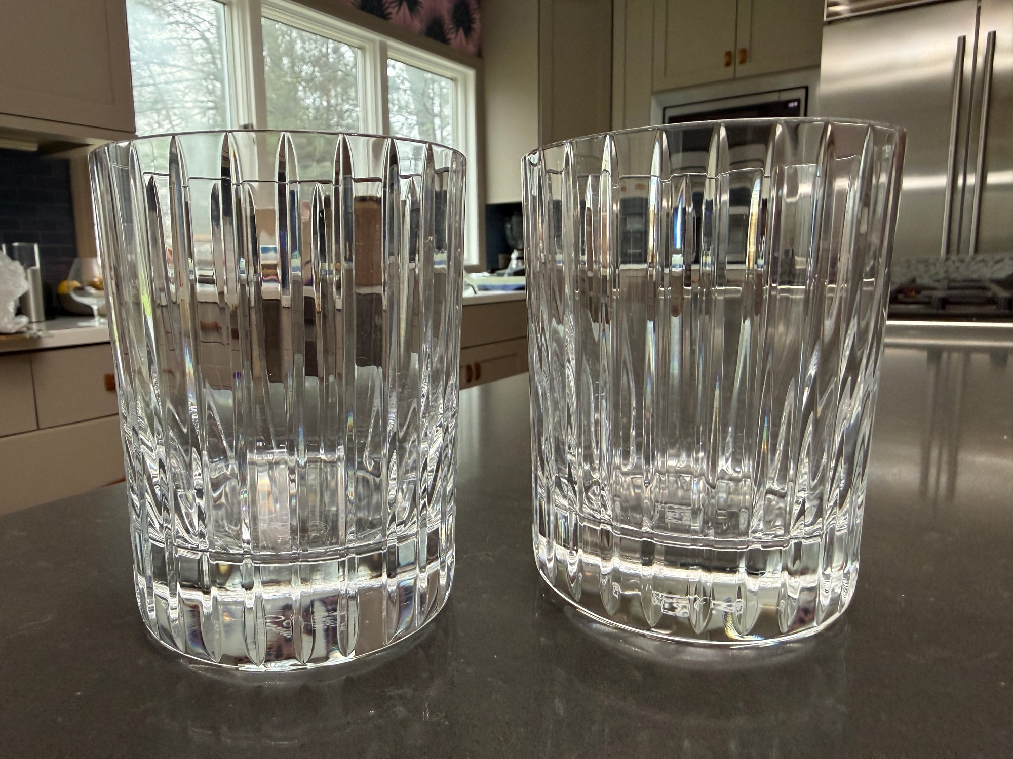 The largest of the Harmonie Tumblers, this striking extra-large tumbler glass holds 16.9 ounces. With vertical cuts travelling the length of the clear crystal, the Harmonie Tumblers feature a strong, sophisticated aesthetic. They make a great addition to a home bar collection or a thoughtful gift for the liquor connoisseur in your life.