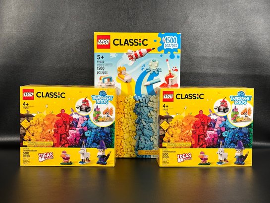 Three new-in-box unopened Classic Lego sets, including two 500-piece sets and one 1500-piece set. Please see pics.