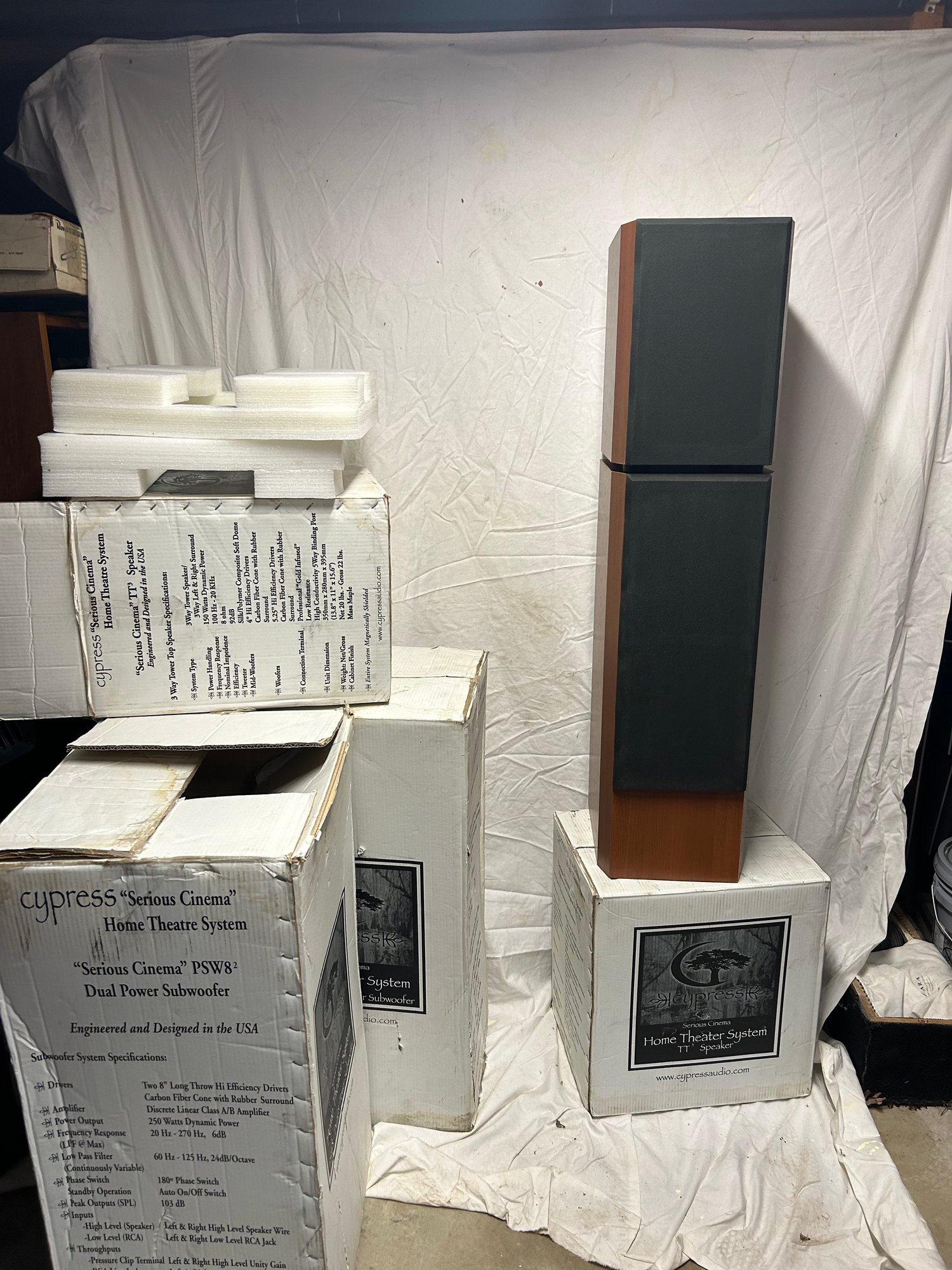 Opened 2 boxes for pictures…. Base speakers have dual powered (250 watts per speaker) sub woofers with base level adjustment.. flexible design, can be separated if desired