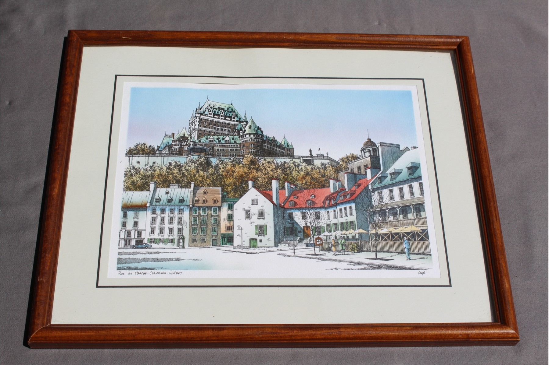 I believe these are hand-colored when looking closely one can see that the color extends beyond some of the lines. Close inspection indicates that these are hand-signed by the artist Vogel and also hand-written titles. Very beautiful pieces, each is a gem!