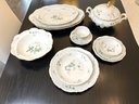 Exquisite extensive collection of the beautiful Bavarian made Mitterteich "Green Ming" pattern porcelain dinner service for twelve including dinner plates, salad plates, bread plates, bowls, a gravy boat, a round lidded tureen, a serving bowl, and three serving platters. Make your Easter, Passover or Ramadan extra special with this set!