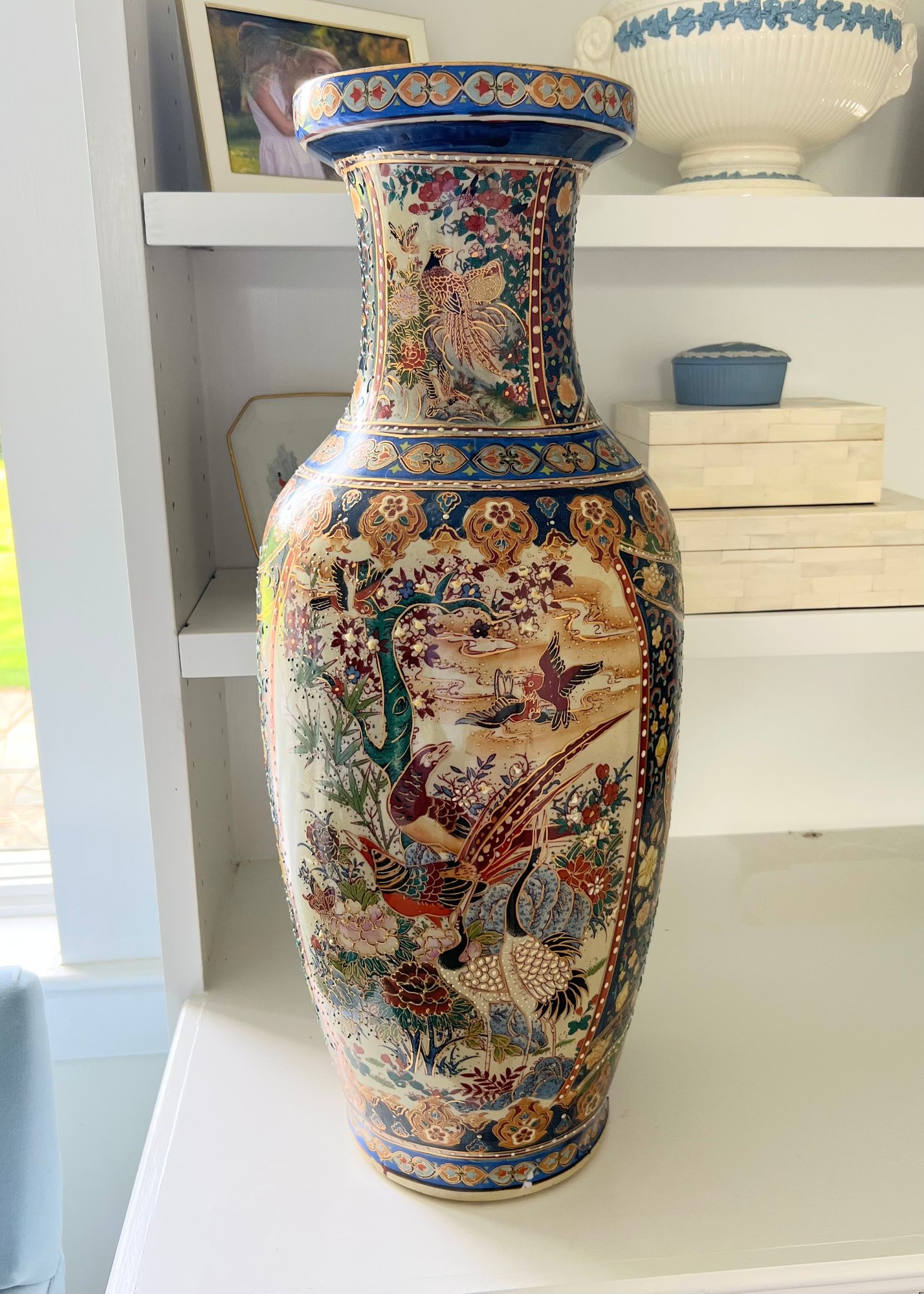 Stunning extra-large Chinoiserie vase, measuring 23" high. A bold decorative piece featuring timeless design and detailing, perfect as a statement in any room or entryway.