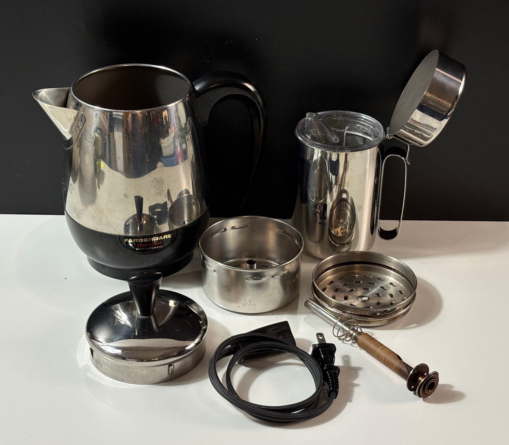 Faberware Perculator and Guido Bergman dispenser creamer lot